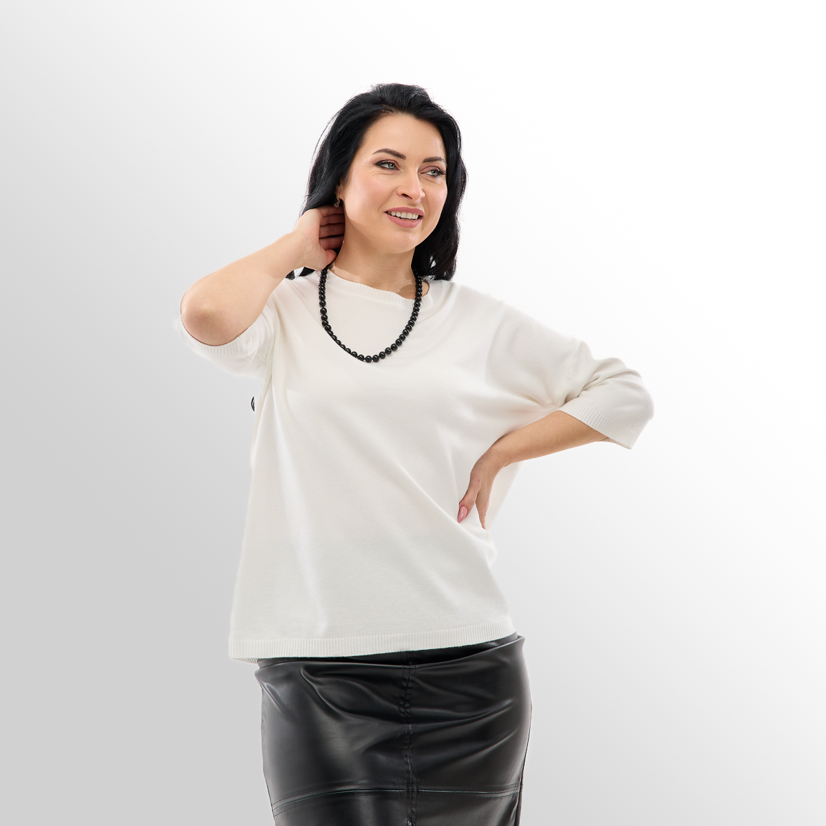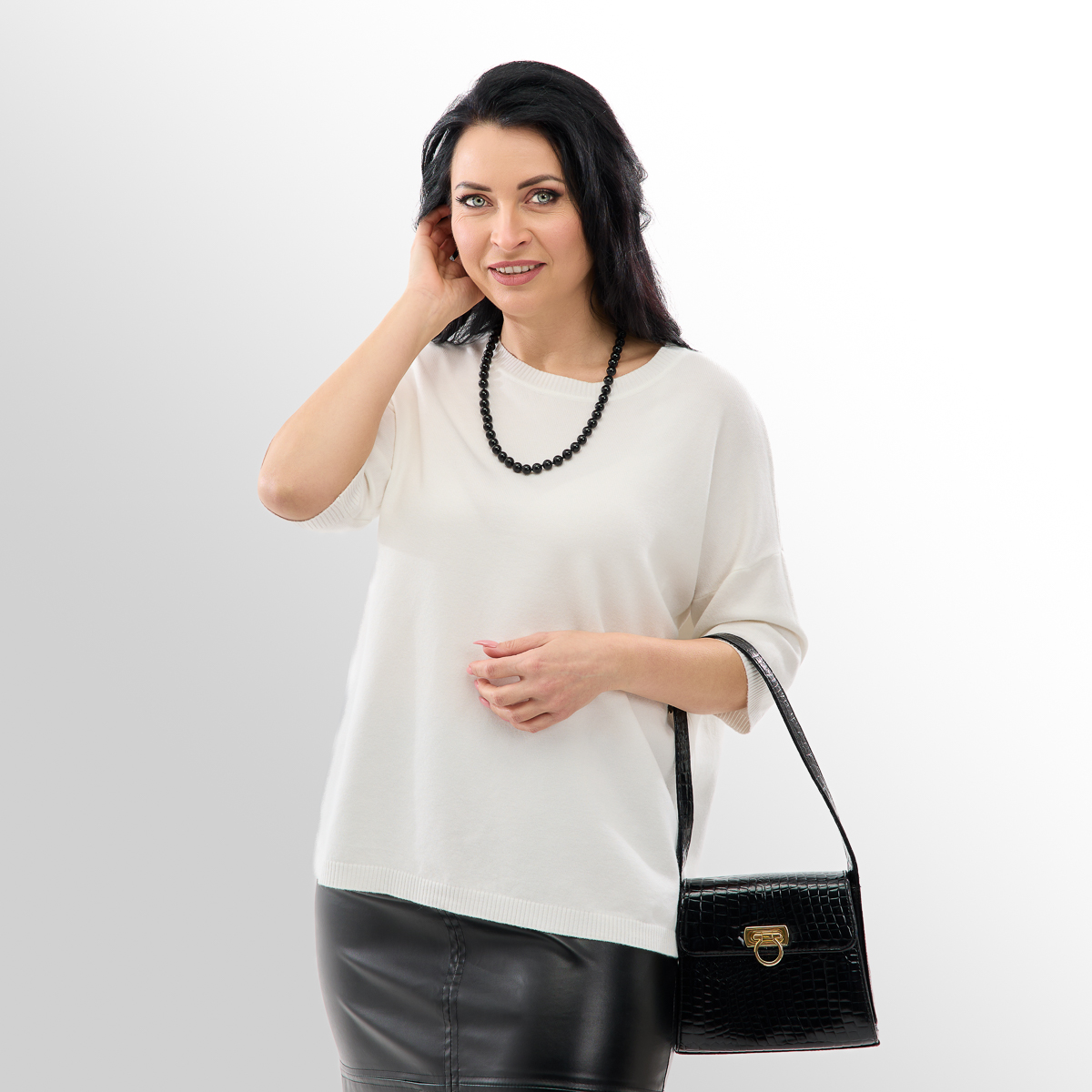Джемпер «Меланія» - це невід'ємна частина базового гардероба, яка гармонійно поєднується зі спідницями, штанами, джинсами та шортами. Він допоможе створювати як елегантні, так і повсякденні образи, підлаштовуючись під ваш стиль.