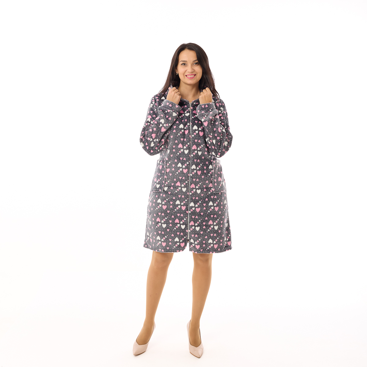 Халат Сусанна, на блискавці, сірий