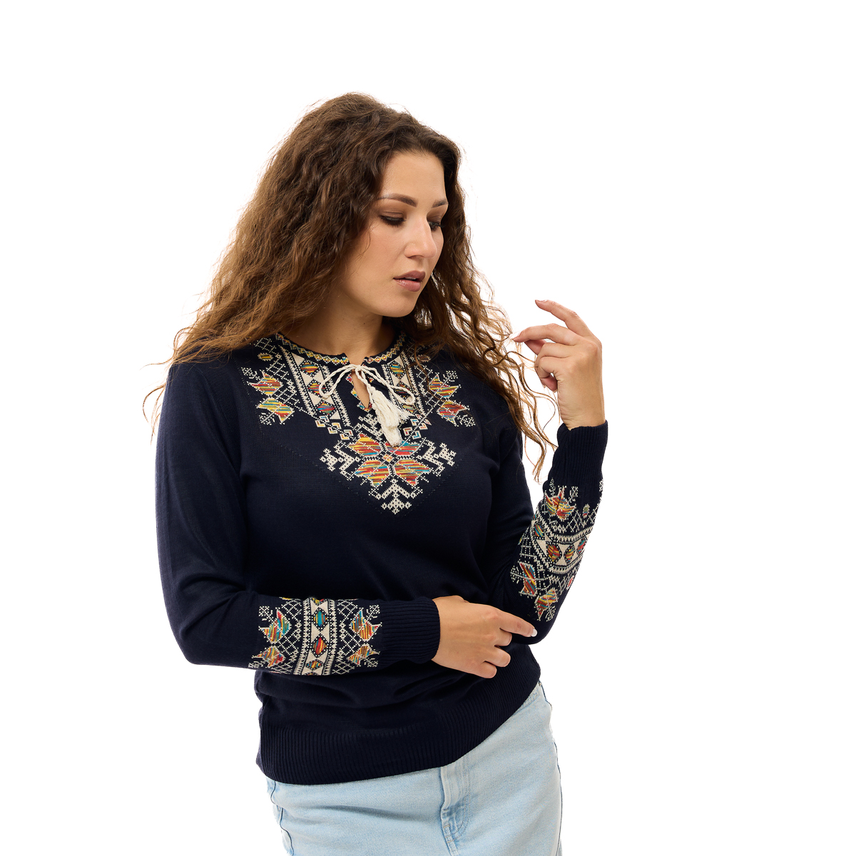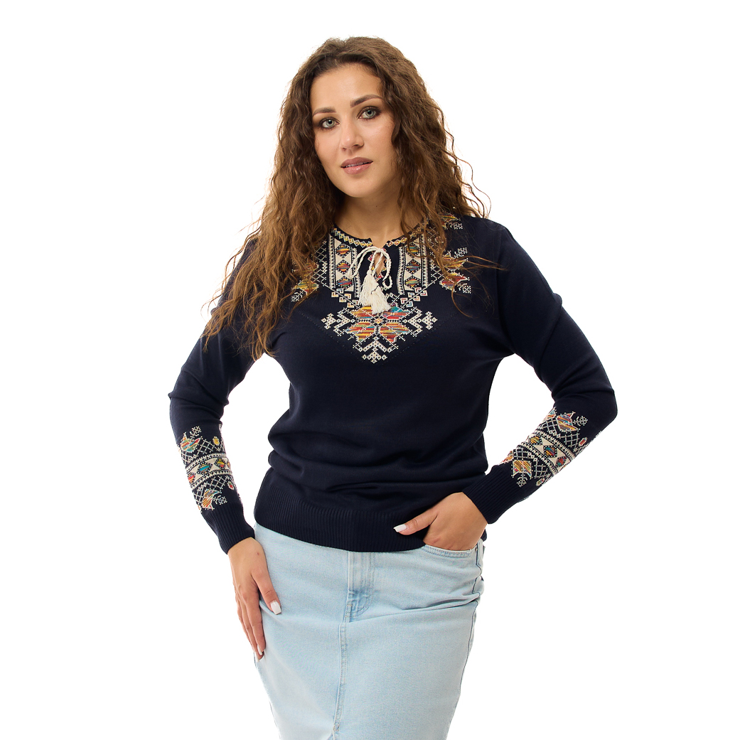 Вишиванка Мері - Елегантний светр прямого крою з вишуканою вишивкою та довгими манжетами на рукавах, що підкреслюють його вишуканий силует.