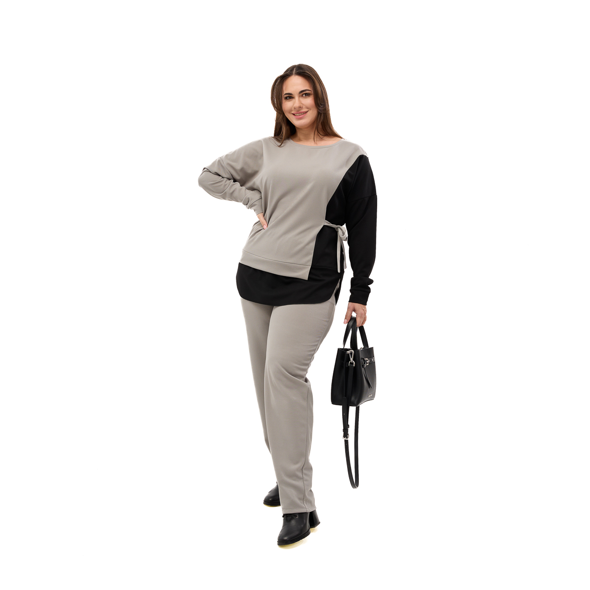 Блуза зі спеціальними зав’язками візуально приховає декілька розмірів та зробить фігуру більш жіночною! А класичні брюки ніколи не вийдуть із моди! Зверніть увагу на цікаве поєднання двох кольорів! Це не лише вдале дизайнерське рішення, яке надає елегантності! Асиметрія зробить Ваш силует більш витонченим, а фігуру стрункішою! Це саме той ефект, який ви завжди шукали! Костюм виконано з якісного та еластичного матеріалу. В колекції глибокі благородні кольори та широкий розмірний ряд! Та приготуйтеся отримувати купу компліментів! Телефонуйте!