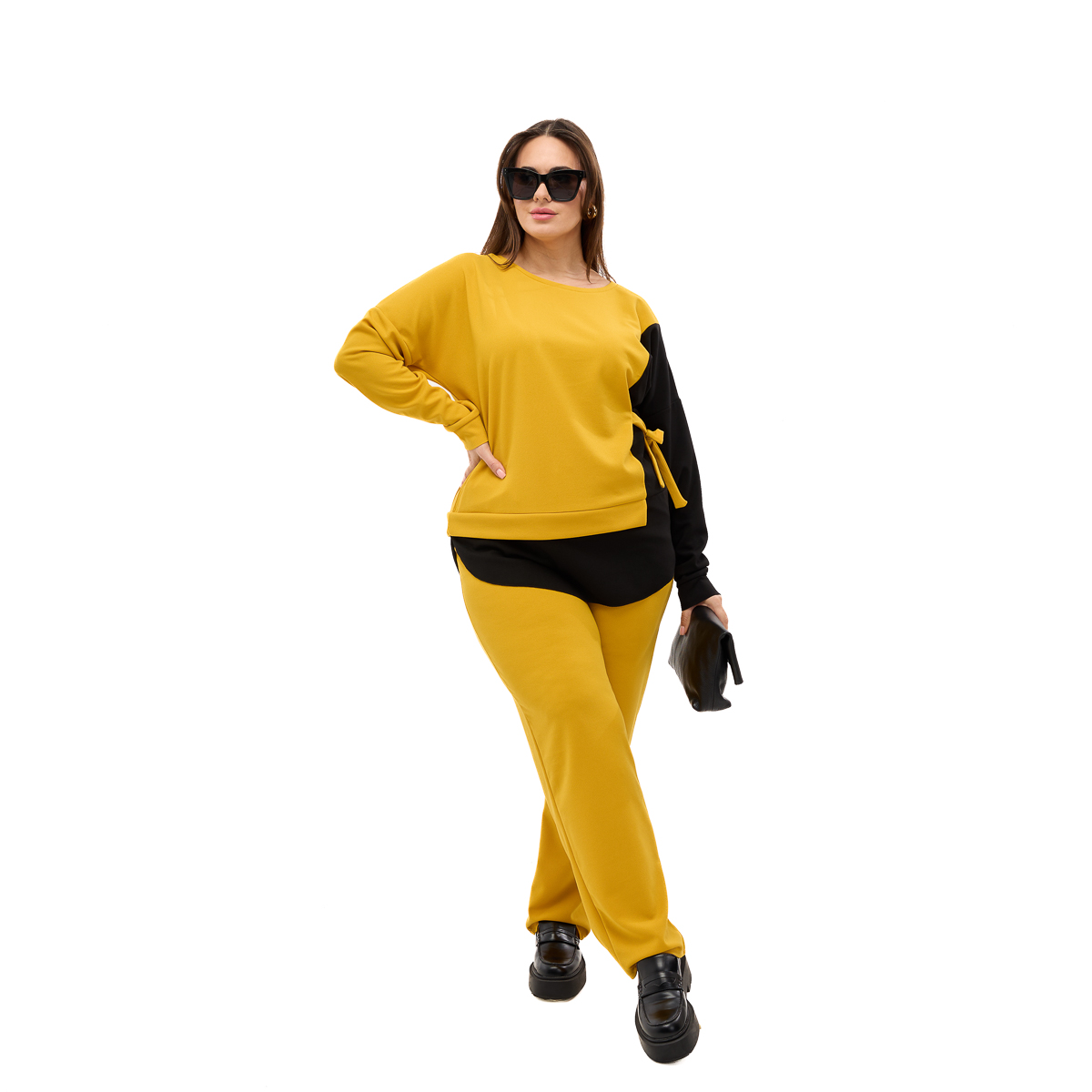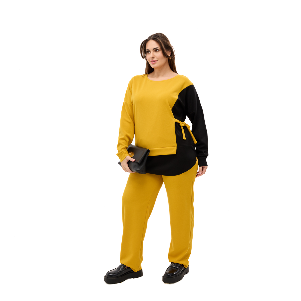 Блуза зі спеціальними зав’язками візуально приховає декілька розмірів та зробить фігуру більш жіночною! А класичні брюки ніколи не вийдуть із моди! Зверніть увагу на цікаве поєднання двох кольорів! Це не лише вдале дизайнерське рішення, яке надає елегантності! Асиметрія зробить Ваш силует більш витонченим, а фігуру стрункішою! Це саме той ефект, який ви завжди шукали! Костюм виконано з якісного та еластичного матеріалу. В колекції глибокі благородні кольори та широкий розмірний ряд! Та приготуйтеся отримувати купу компліментів! Телефонуйте!