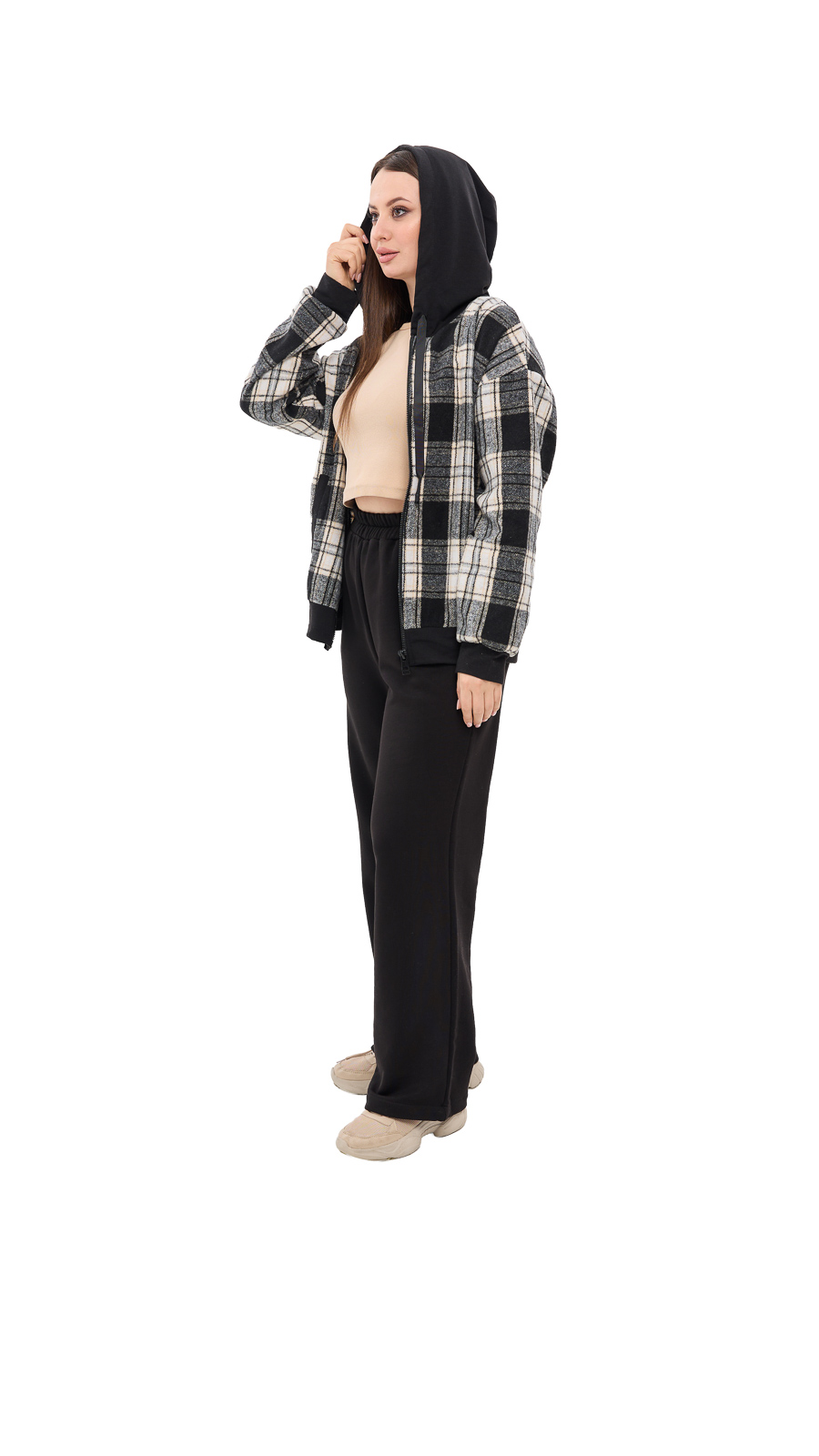 Костюм Мелісса у клітинку з капюшоном — стильний і дуже комфортний варіант на щодень, коли хочеться виглядати зібрано, але почуватися максимально вільно. Верх виконаний у форматі м’якої сорочки-кофти на блискавці з капюшоном та двома зручними боковими кишенями — ідеально, щоб зігріти руки або взяти з собою дрібниці. Тканина приємна на дотик, добре лягає по фігурі й створює акуратний силует. Штани — прямого брючного крою на резинці, з легким звуженням донизу, завдяки чому образ виглядає сучасно й охайно. Комплект легко комбінується з базовими футболками/топами та кросівками, підходить для прогулянок, поїздок, роботи в casual-стилі чи затишних вихідних.