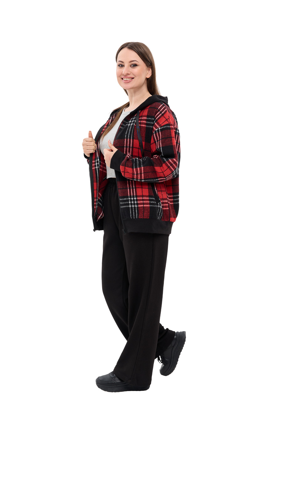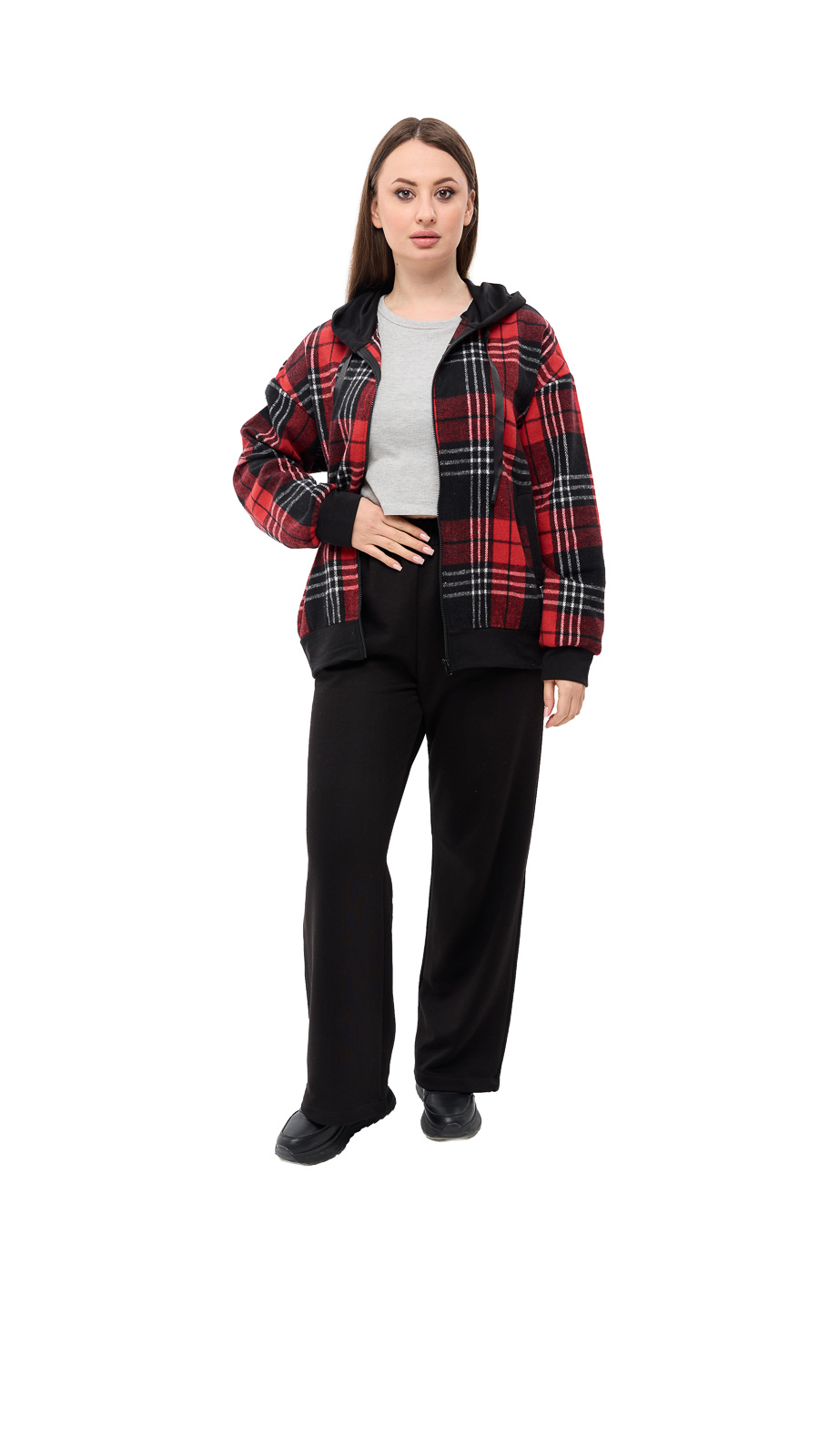 Костюм Мелісса у клітинку з капюшоном — стильний і дуже комфортний варіант на щодень, коли хочеться виглядати зібрано, але почуватися максимально вільно. Верх виконаний у форматі м’якої сорочки-кофти на блискавці з капюшоном та двома зручними боковими кишенями — ідеально, щоб зігріти руки або взяти з собою дрібниці. Тканина приємна на дотик, добре лягає по фігурі й створює акуратний силует. Штани — прямого брючного крою на резинці, з легким звуженням донизу, завдяки чому образ виглядає сучасно й охайно. Комплект легко комбінується з базовими футболками/топами та кросівками, підходить для прогулянок, поїздок, роботи в casual-стилі чи затишних вихідних.