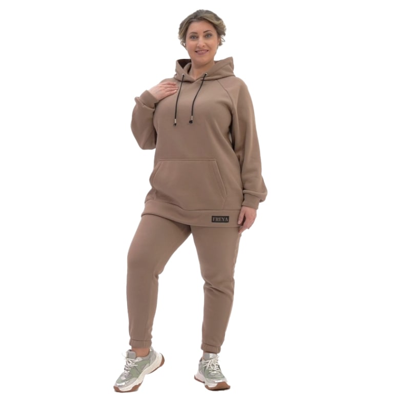 Костюм Шеррі - це справжній знахідка для холодного періоду року. Виготовлений із преміального утепленого футера на основі бавовни, він ідеально гріє та забезпечує комфорт як в приміщенні, так і на вулиці. Цей зручний і стильний костюм підходить для жінок будь-якого типу фігури. В комплекті вас чекає актуальна укорочена куртка вільного крою з капюшоном і комфортні брюки, які підгоняться під ваші параметри.