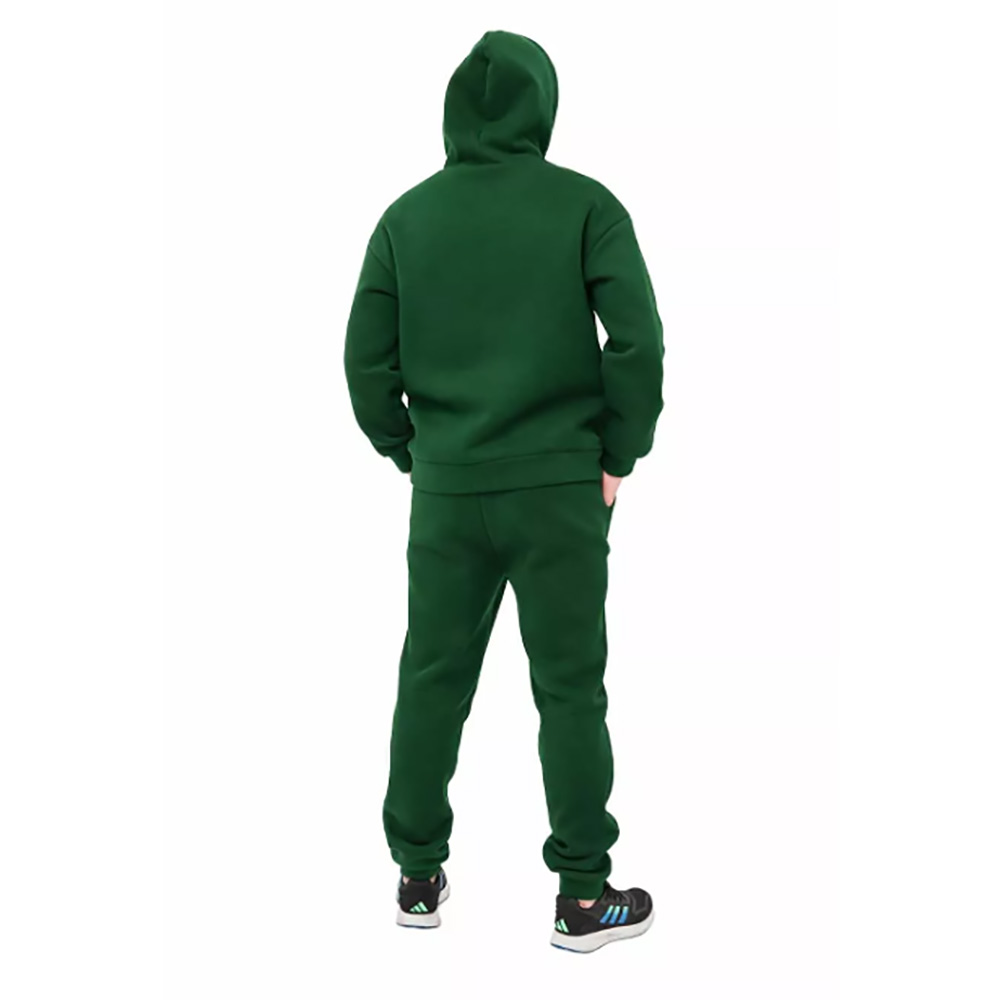 Брюки доповнені еластичною резинкою на талії та знизу, тому забезпечують максимальний комфорт під час руху. Є зручні кишені — дрібниці завжди під рукою. Виготовлений костюм із тринитки на флісі — тканини, що поєднує міцність і неймовірну м’якість. Вона чудово тримає форму, не розтягується та зберігає тепло навіть у прохолодну погоду.