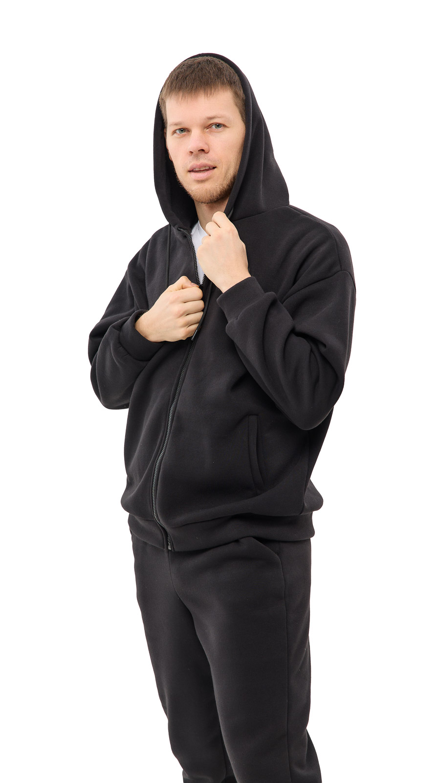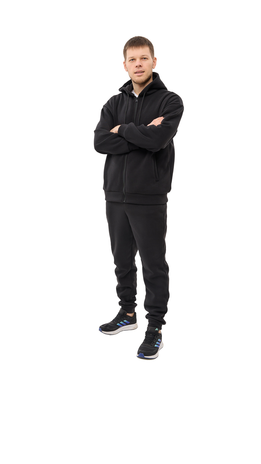 Брюки доповнені еластичною резинкою на талії та знизу, тому забезпечують максимальний комфорт під час руху. Є зручні кишені — дрібниці завжди під рукою. Виготовлений костюм із тринитки на флісі — тканини, що поєднує міцність і неймовірну м’якість. Вона чудово тримає форму, не розтягується та зберігає тепло навіть у прохолодну погоду.