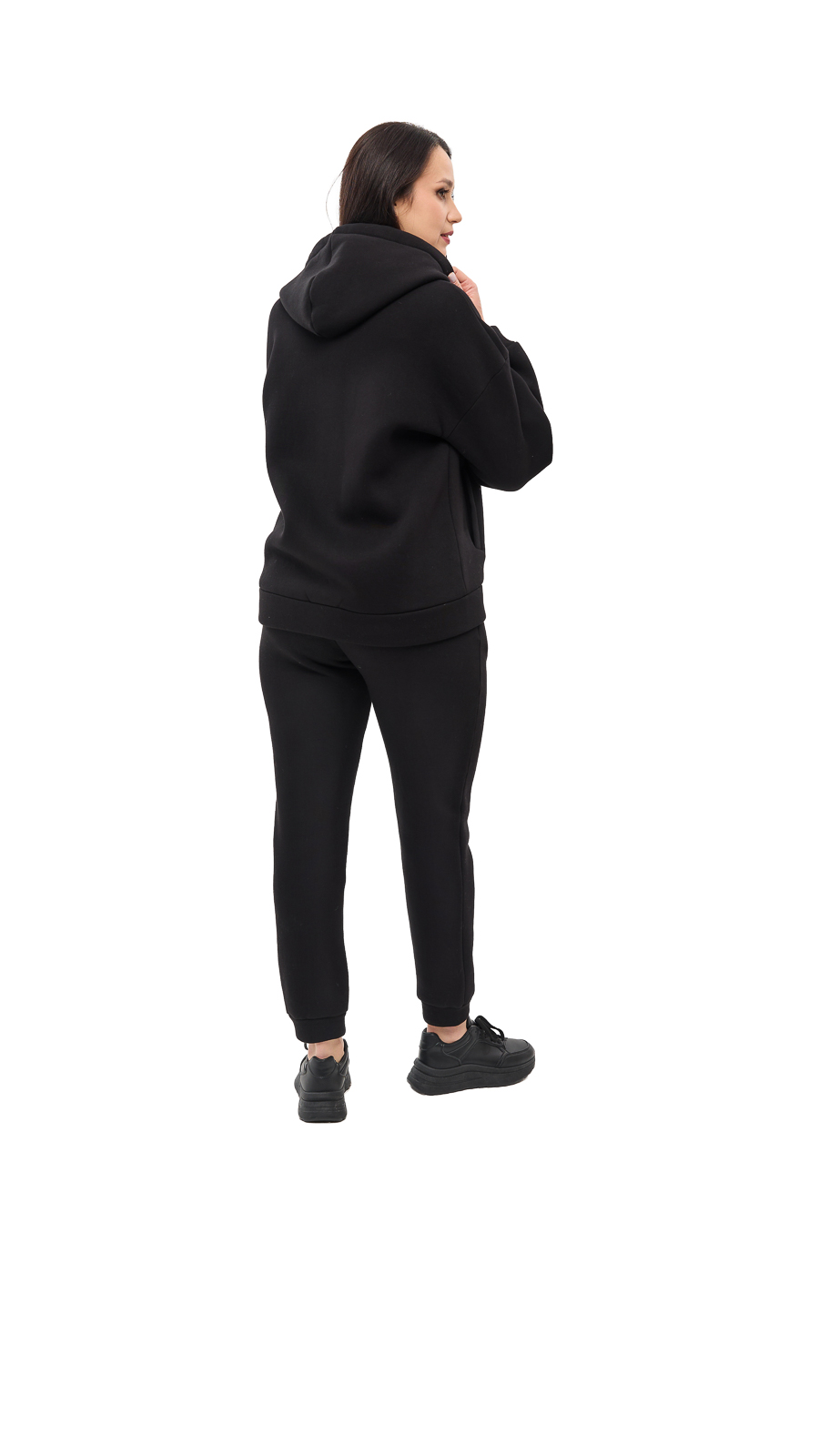 Костюм складається з кофти на блискавці з капюшоном і зручних брюк з високою посадкою.