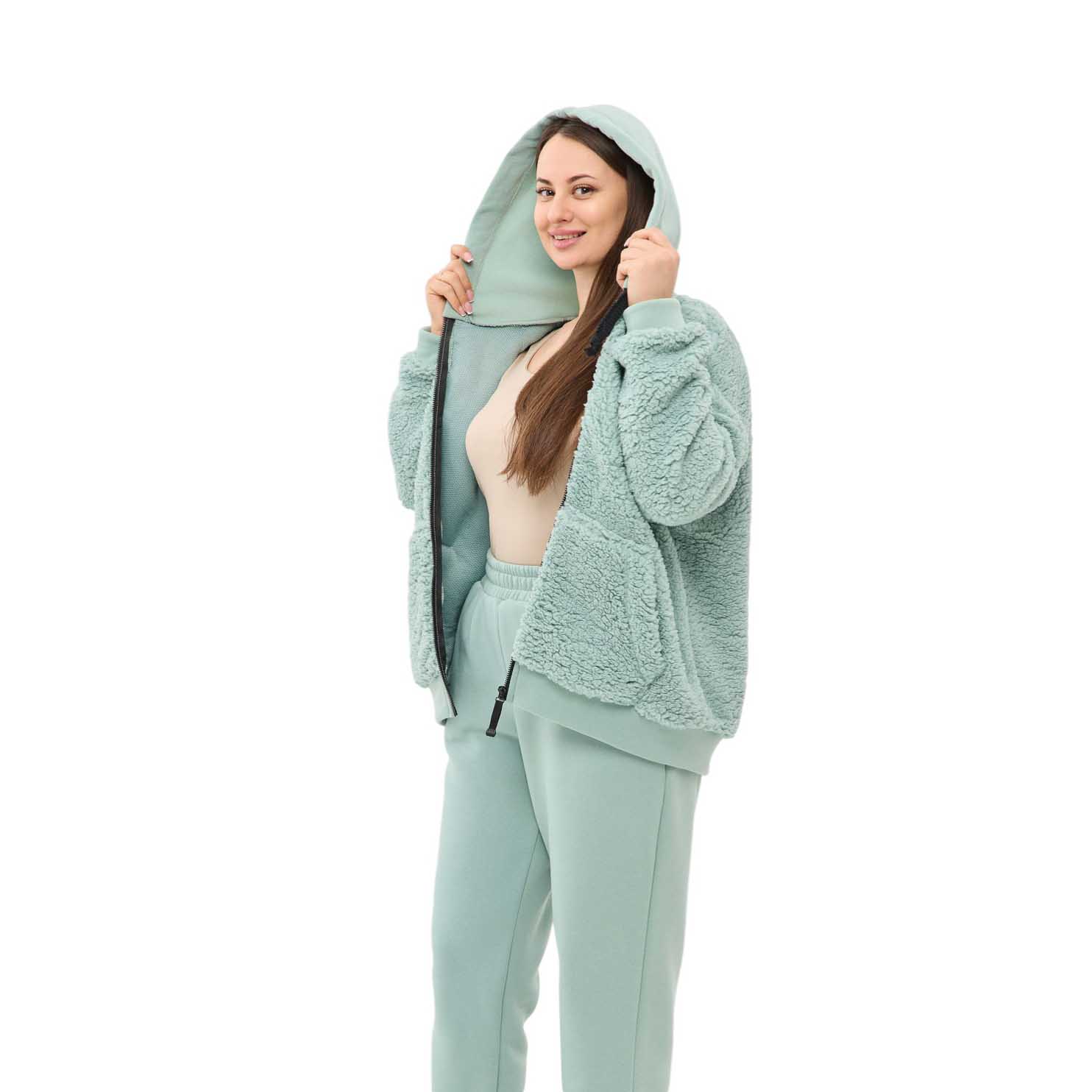 Худі виготовлено з хутра Тедді - трендового матеріалу цього сезону, який не тільки зігріває, а й має надзвичайно милий і привабливий вигляд.