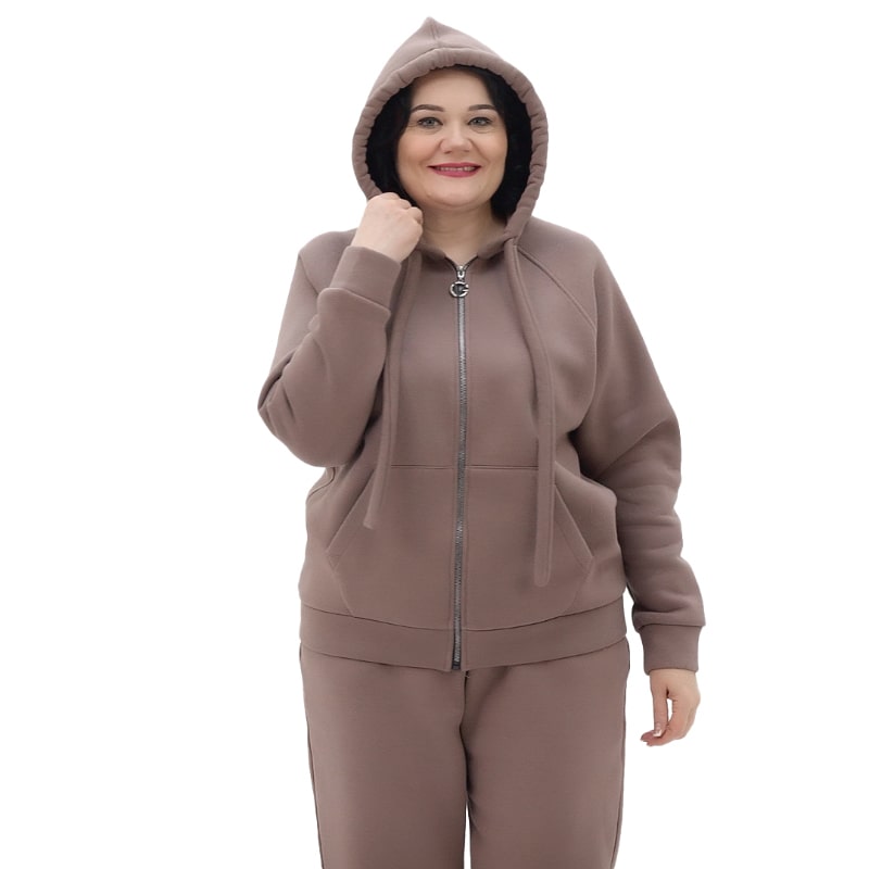 Продуманий універсальний крій костюма не лише підкреслює фігуру, але й відмінно підлаштовується під будь-який тип фігури, делікатно формуючи силует та підкреслюючи жіночність. Преміальний утеплений трикотаж тринитка на основі бавовни забезпечує чудове зігрівання у вітряну чи морозну погоду. Неймовірно м'який матеріал не ковтується та витримує багаторазові прання, гарантуючи ваш комфорт у будь-яку погоду.