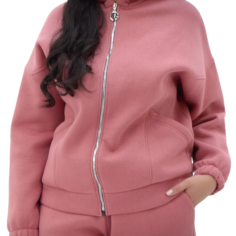 Продуманий універсальний крій костюма не лише підкреслює фігуру, але й відмінно підлаштовується під будь-який тип фігури, делікатно формуючи силует та підкреслюючи жіночність. Преміальний утеплений трикотаж тринитка на основі бавовни забезпечує чудове зігрівання у вітряну чи морозну погоду. Неймовірно м'який матеріал не ковтується та витримує багаторазові прання, гарантуючи ваш комфорт у будь-яку погоду.