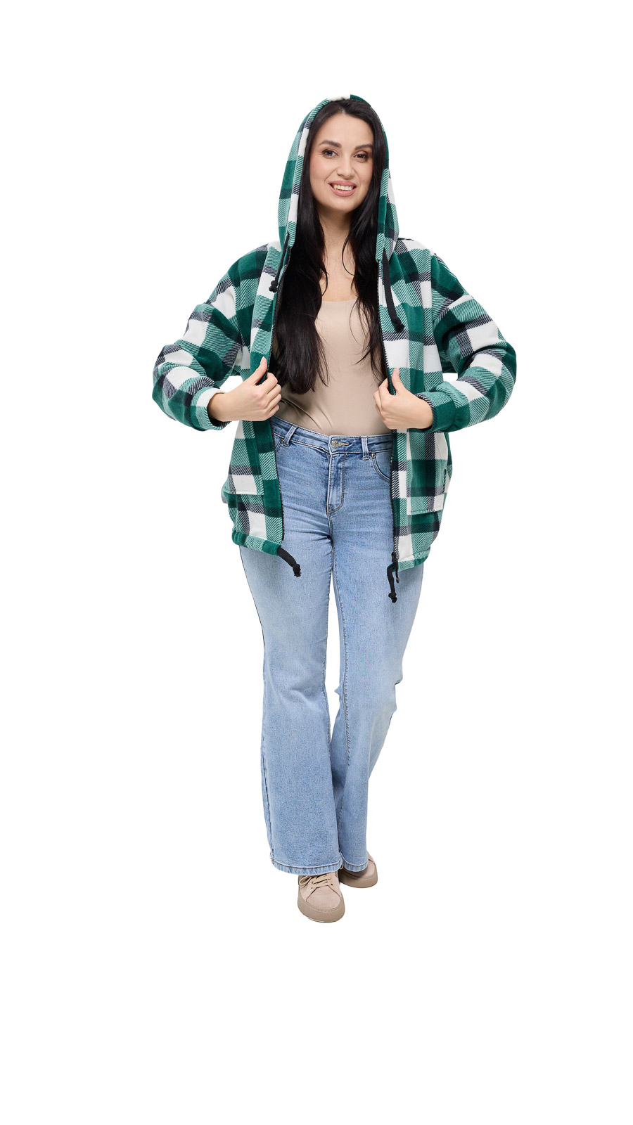 Куртка Флісу, клітинка, зелена