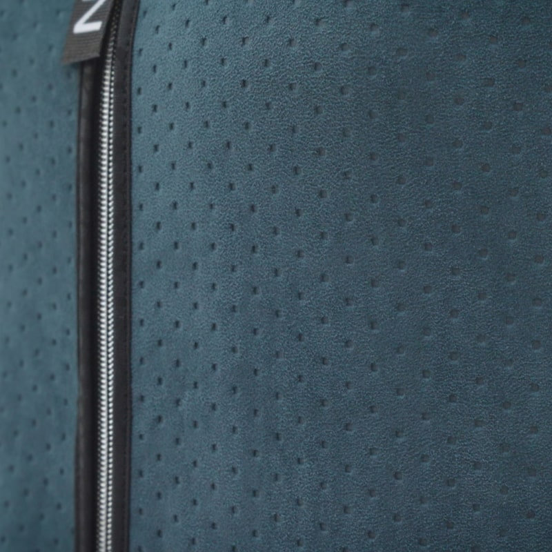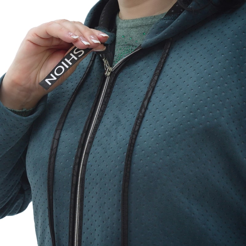 Розкішна замшева фактура цієї куртки говорить сама за себе. Вона надає образу дороговартісний вигляд, а візерунок у вигляді маленького горошка додає цікавої текстури. Кольорова гамма, представлена в глибокому зеленому та благородному синьому, доповнює гармонію цього модного рішення.