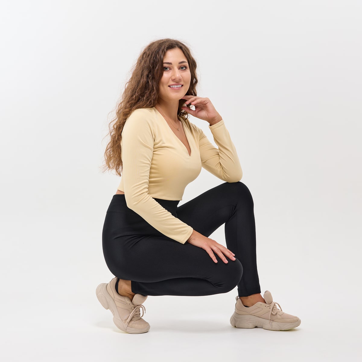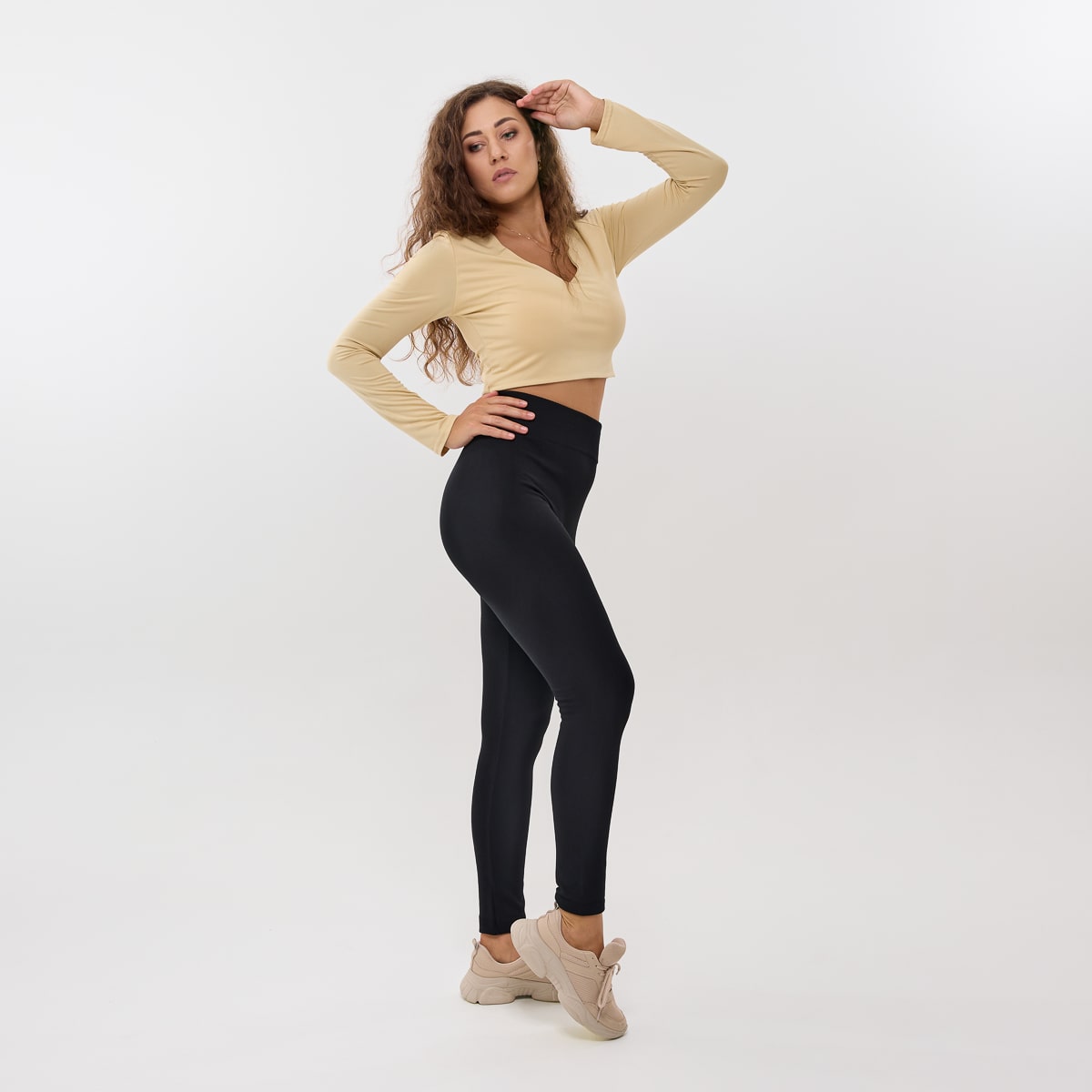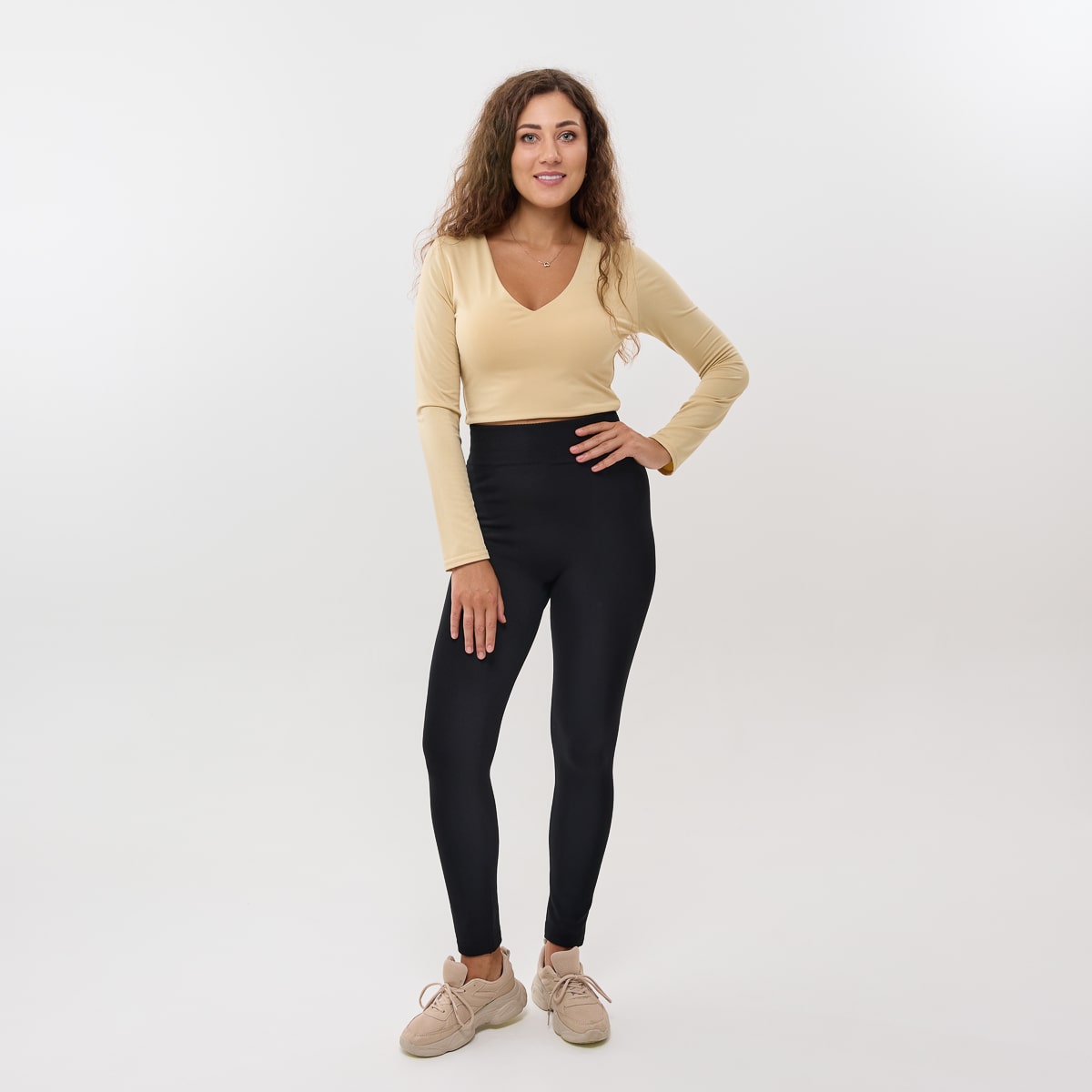 Ідеальна посадка та моделювання фігури. Завдяки високій талії з утягуючим ефектом, лосини створюють візуально стрункий силует, підкреслюють талію та роблять ноги візуально довшими. Безшовна конструкція забезпечує ідеально гладку лінію під будь-яким одягом, без складок і потовщень. Лосини Термософт дарують відчуття легкості й упевненості у собі — ви виглядаєте бездоганно у будь-якій ситуації.