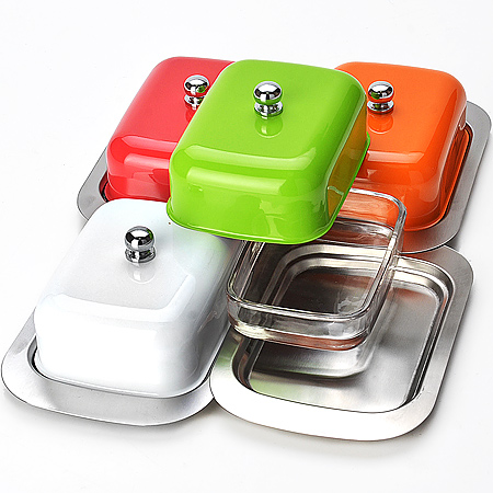 Маслянка виготовлена з нержавіючої сталі і хромованого цинкового сплаву, має скляну внутрішню чашу. Весь комплект складається з трьох предметів: металевий піднос, кришка і внутрішня чаша. Це робить її не лише функціональною, але і дозволяє легко підтримувати чистоту.