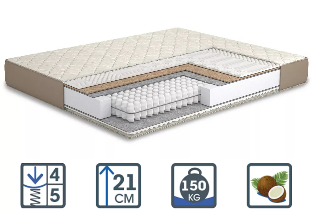 • Кокосова койра. Міцна плита з природного кокосового волокна. Виключає життєдіяльність комах та хвороботворних бактерій, забезпечує відмінну жорсткість.