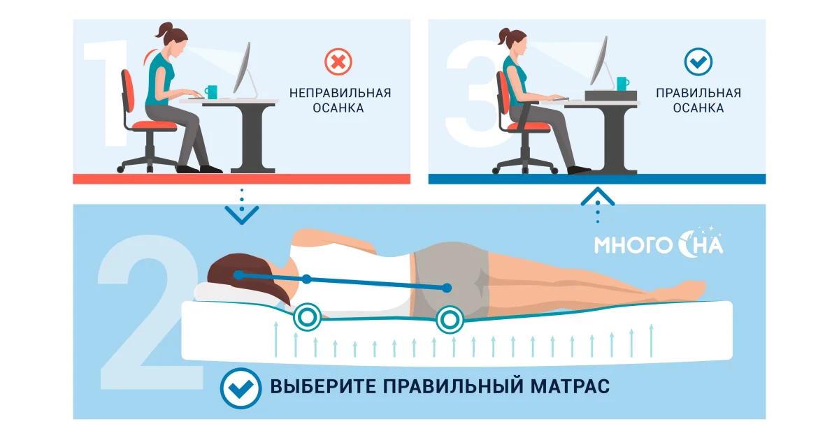 Середній людина спить близько 7-8 годин на добу. Протягом цього часу наша спина або зміцнюється в правильному положенні, або деформується, і тут головну роль відіграє матрац.