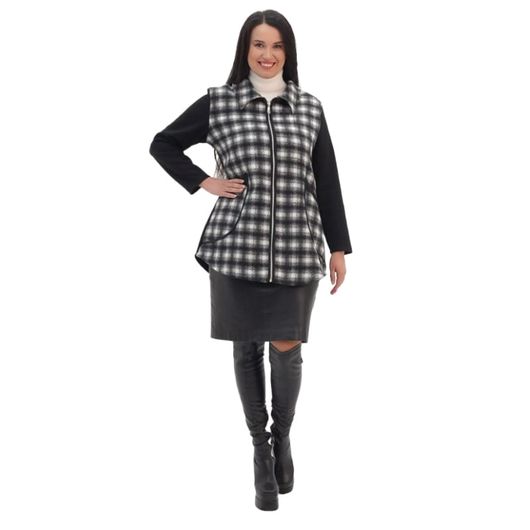 Унікальний дизайн. "Французький шик" виділяється на фоні стандартних пальт завдяки своєму неповторному поєднанню класики та оригінальності. Чорний і білий кольори в поєднанні з культовими принтами, такими як гусяча лапка та клітинка, додають образу вишуканості та шарму.