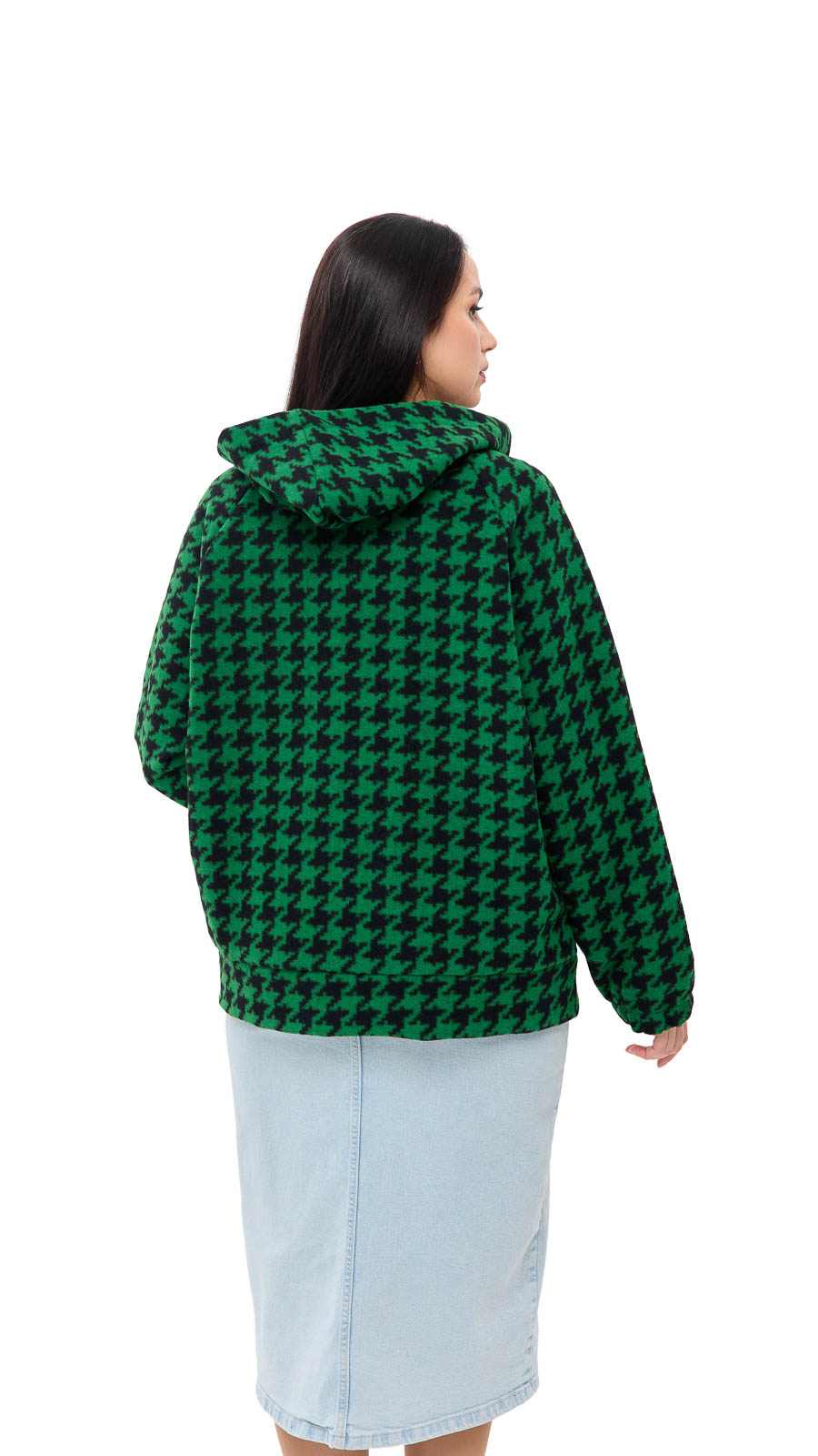 Доступні кольори — чорно-білий, зелений і мокко — дозволяють підібрати варіант під настрій і стиль. Класичний візерунок «гусячі лапки» додає образу інтелігентної елегантності, а укорочений крій робить модель більш динамічною та сучасною. Розмірний ряд 48–58 забезпечує комфортну посадку та чудово підходить для різних типів фігури. Пальто гарно сідає як із класичними брюками, так і з укороченими моделями або брюками 7/8, створюючи гармонійний і стильний силует. Його легко поєднувати з ботильйонами, чоботами чи лоферами — образ завжди виглядатиме завершеним.Сезон - демісезонний, зимовий