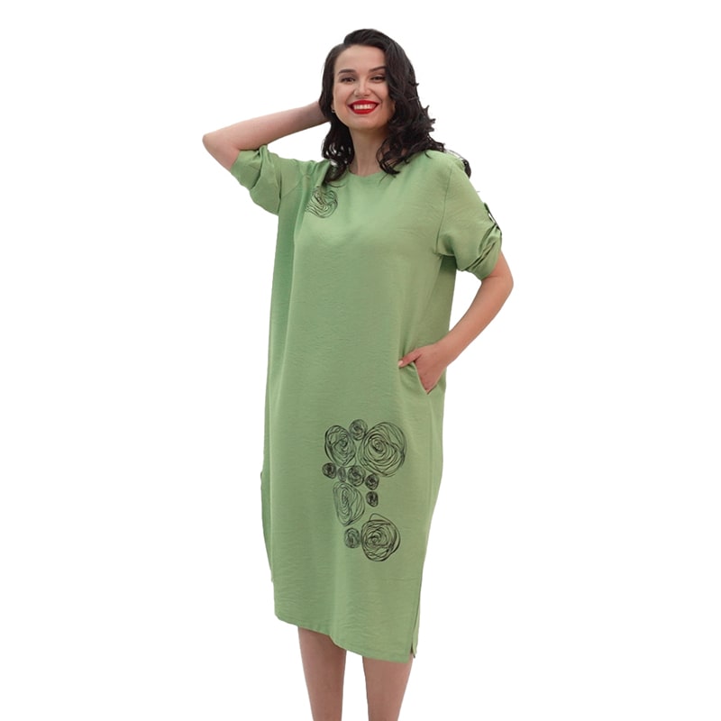 Вільний крій сукні Лаві чудово приховує всі недоліки фігури, не сковує рухів і робить силует жіночним та легким!! Пасує будь-якому типу фігури! Дихаюча тканина на основі льону легко спадає по фігурі, а фактура жатки надає сукні Лаві особливої вишуканості!! Надзвичайно красиво і дуже практично! При цьому елегантний рукав із широкою проймою додасть впевненості у будь-якій ситуації! Базові забарвлення підкреслять ваш статус!! Виглядає дуже солідно! А квітковий принт розставить потрібні акценти!