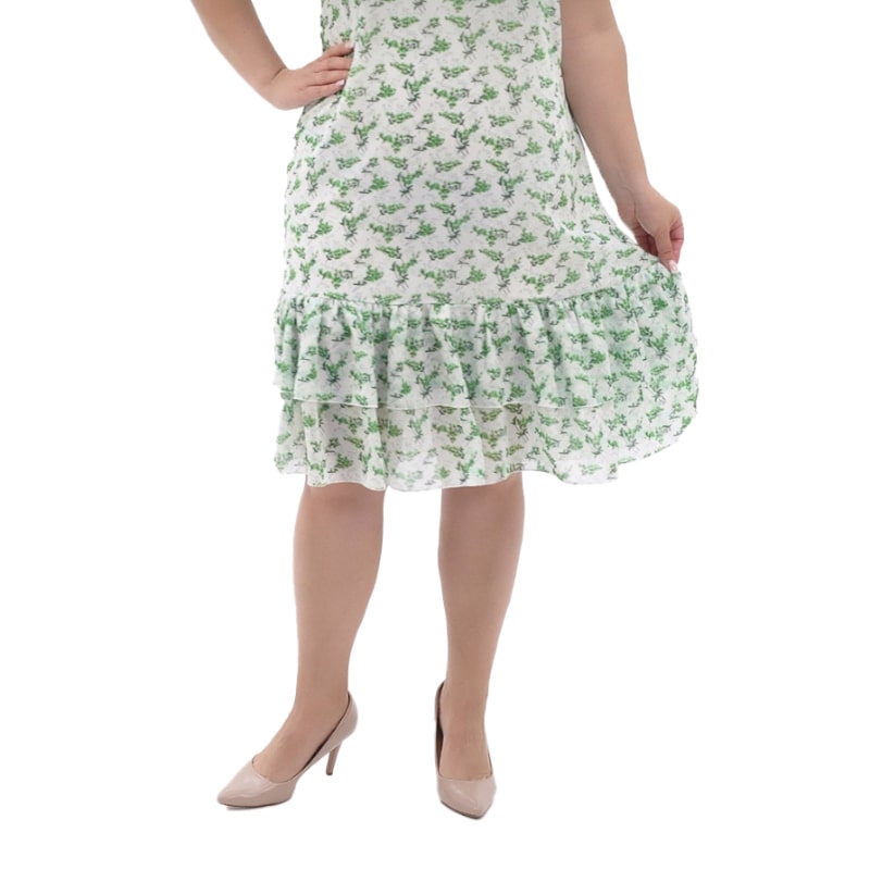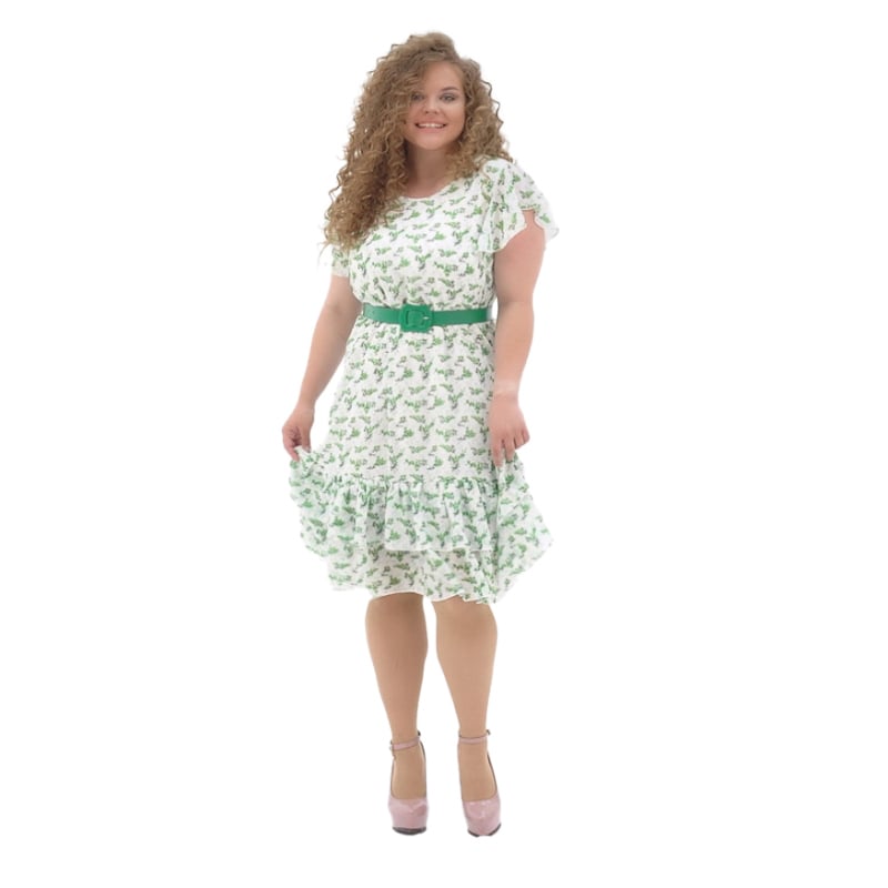 Шифонові сукні завжди надають жіночності та привабливості образу. Якщо шифон виконаний з віскози, то воно не тільки зручне, а й практичне. Сукня Найджел саме така! Вона має вільну структуру, що дозволяє шкірі дихати, а також зовсім не мнеться! Візуально образи, створені з використанням цієї сукні, легкі та повітряні. І, звичайно ж, вона має підкладку для додаткового комфорту та впевненості. Прямий крій сукні Найджел робить силует струнким, а незвичайні рукавчики та волани знизу додають оригінальності. Проте її особливістю є квітковий принт, який вважається наймоднішим принтом цього сезону. Сукня доступна у блакитному, синьому та зеленому відтінках, а також пропонується у розмірах до 54.