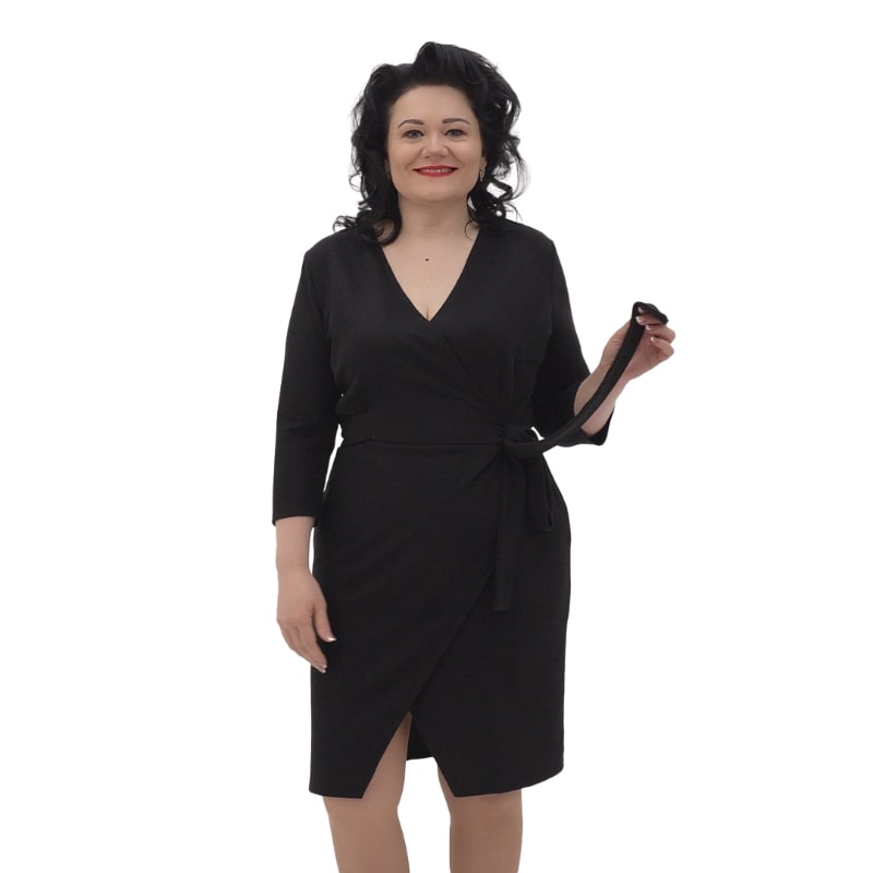 Кожна деталь сукні Перфетто додає унікальний шарм вашому образу! V-подібний виріз візуально подовжує шию, рукави три чверті надають рукам витонченість, а акцент на талії робить фігуру більш стрункою та привабливою. У колекції сукня представлена у вишуканих кольорах: чорний, синій, бордо та бірюза. Перфетто - ідеальний вибір як для урочистих подій, так і для повсякденного носіння! Доступні розміри до 56.