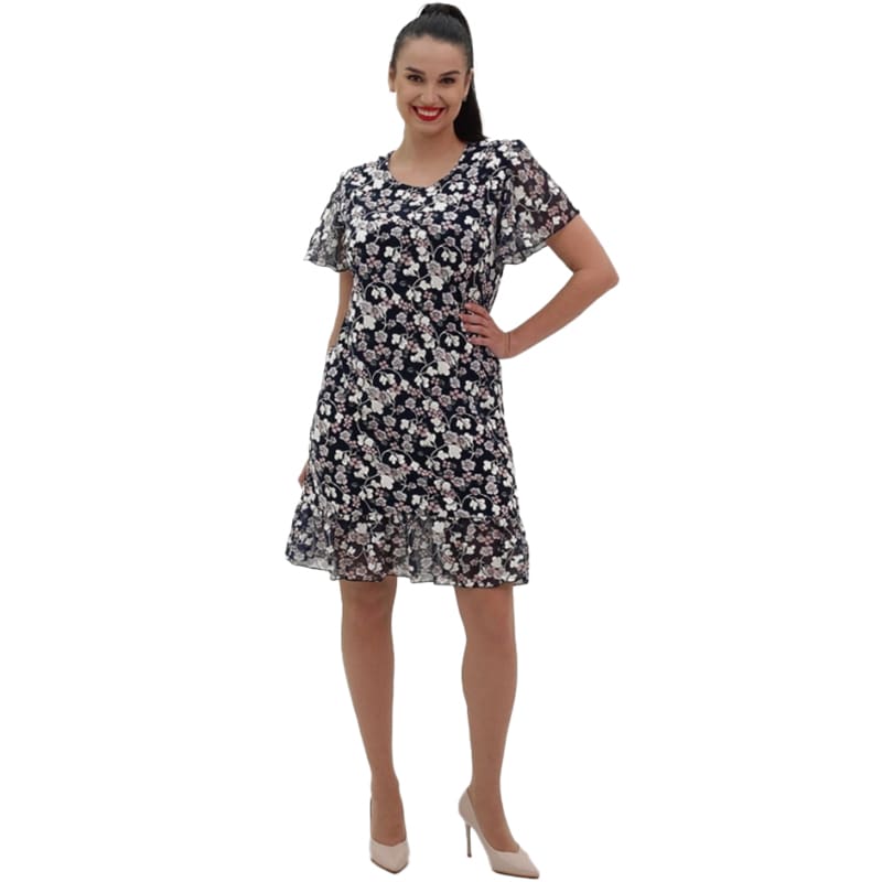 Сукня Романтик, темно-синя з шифоновим воланом