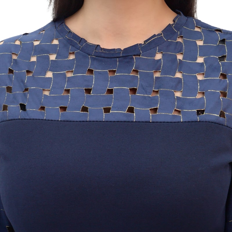 Поєднання Фактур: Гра текстур між класичним крепом та перфорованою замшею надає наряду неповторності та шарму.