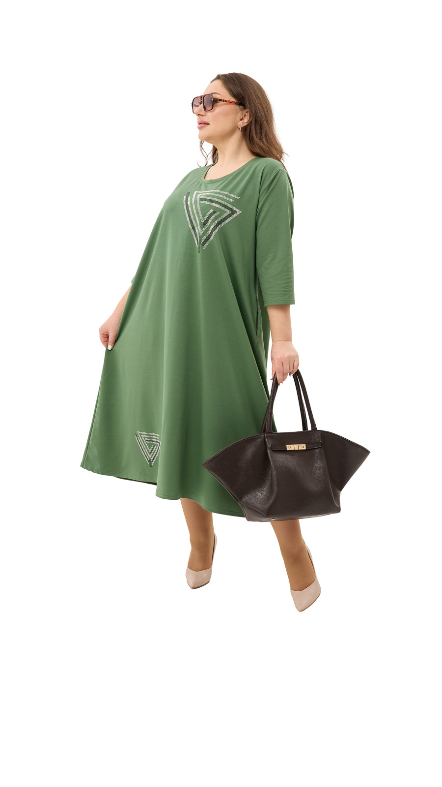 Стильний принт зі стразами додає образу виразності та блиску, роблячи сукню не тільки зручною, а й елегантною.
