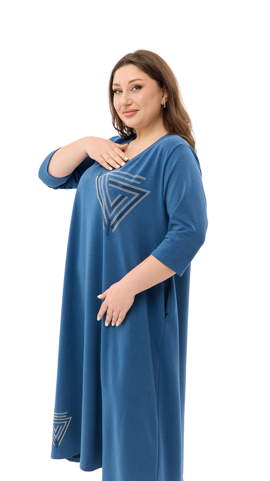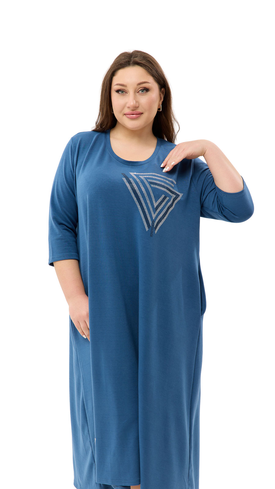 Стильний принт зі стразами додає образу виразності та блиску, роблячи сукню не тільки зручною, а й елегантною.
