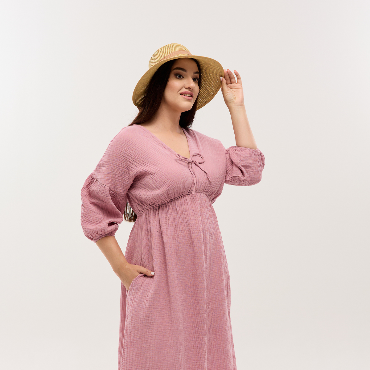 Сукня Саванна — це ідеальний вибір для тих, хто цінує поєднання легкості, натуральності й стилю. Вільний крій дарує відчуття простору та комфорту, створюючи витончений силует, який пасує жінкам із різними типами фігур. Виготовлена з натурального мусліну — дихаючої, м’якої на дотик тканини, що ніжно огортає тіло та забезпечує комфорт навіть у найспекотніші дні.