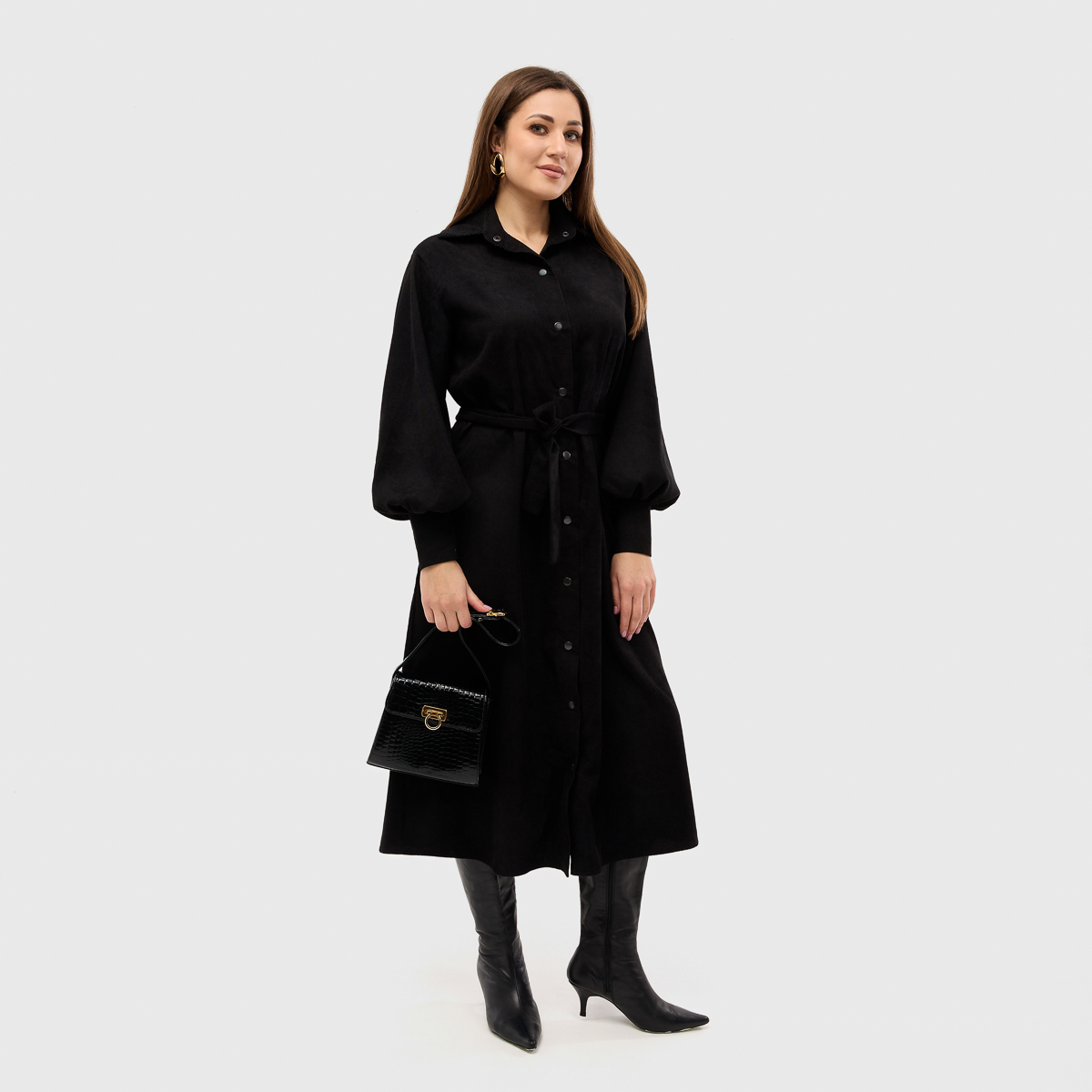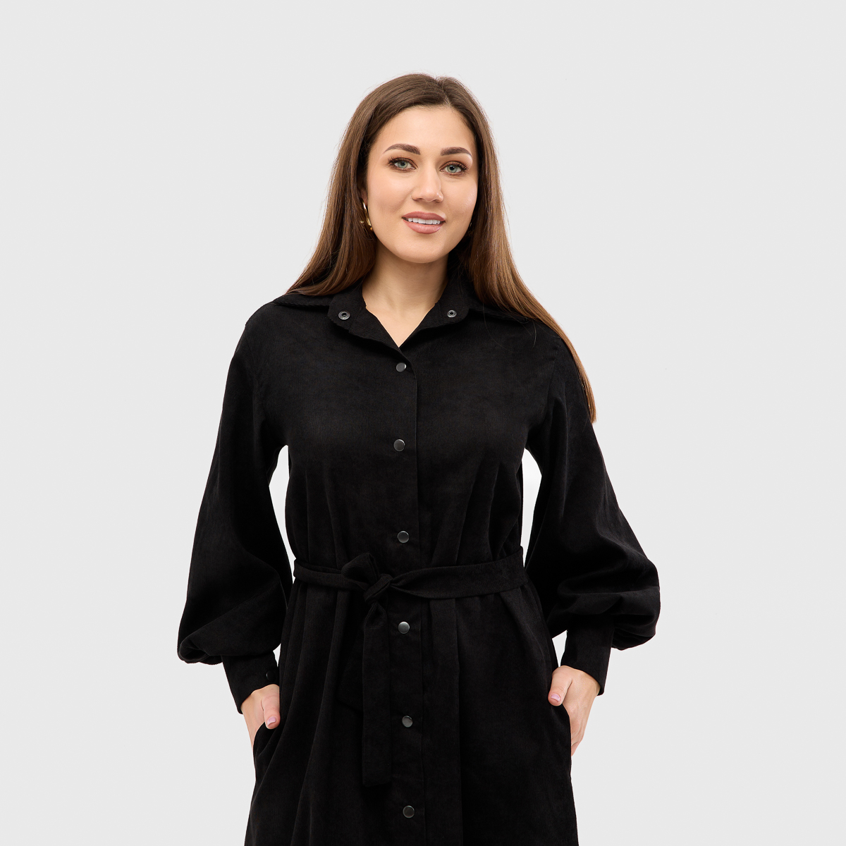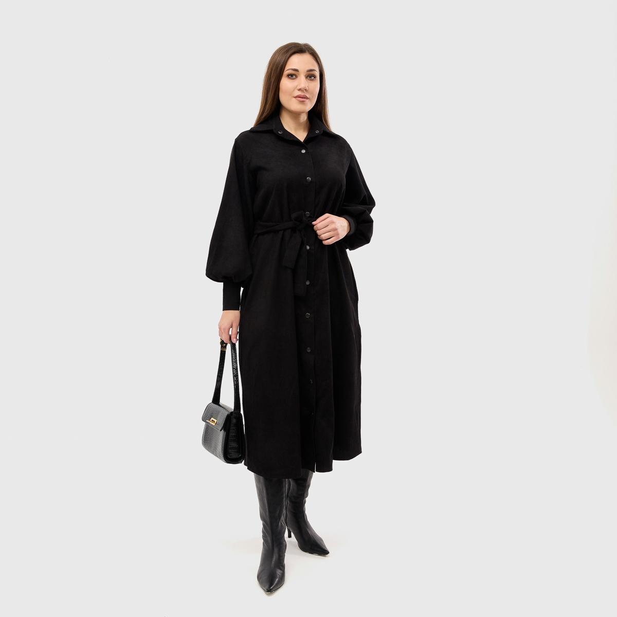 Ідеальне поєднання класики та сучасних деталей. Сукня виконана з класичним коміром, манжетами на рукавах і застібками-кнопками, які роблять образ елегантним і стильним. Наявність пояса підкреслює талію, створюючи жіночний силует.
