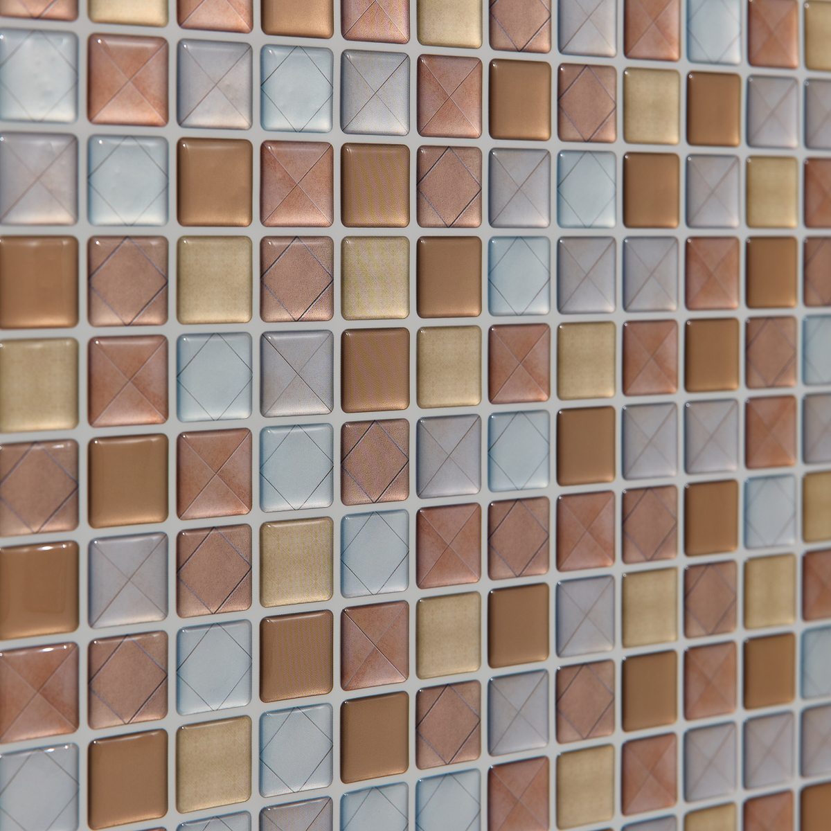 Самоклеюча плитка підходить для самостійного монтажу, проста у використанні, і ви можете оновити свій будинок без витрат на ремонт. Ця плитка підходить для використання на кухонних фартухах, фартухах у ванній кімнаті, стільницях, спальнях, вітальнях та інших плоских поверхнях. Не вимагає затирання або цементування і легко очищається вологою ганчіркою з м'яким миючим засобом.