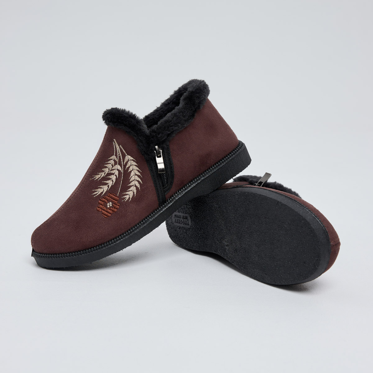 Напівчобітки Аніта, коричневі з вишивкою колоски