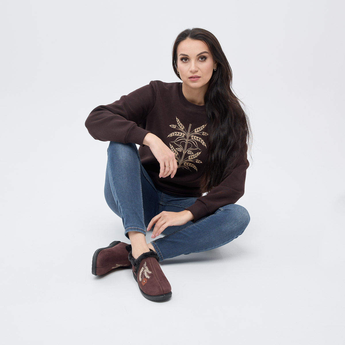 Напівчобітки Аніта, коричневі з вишивкою колоски