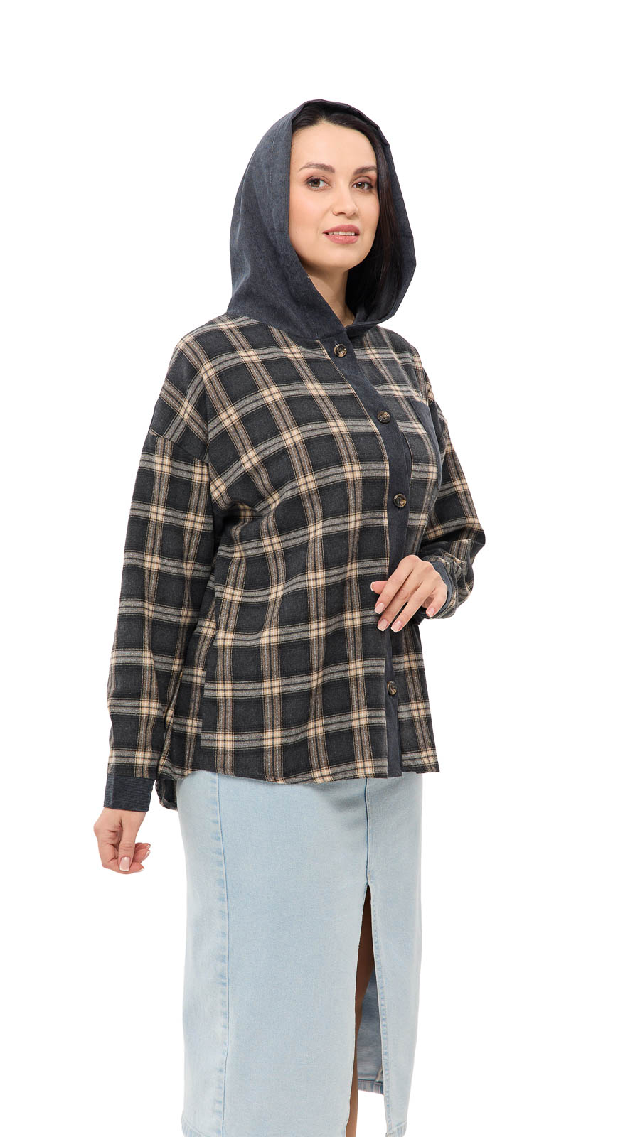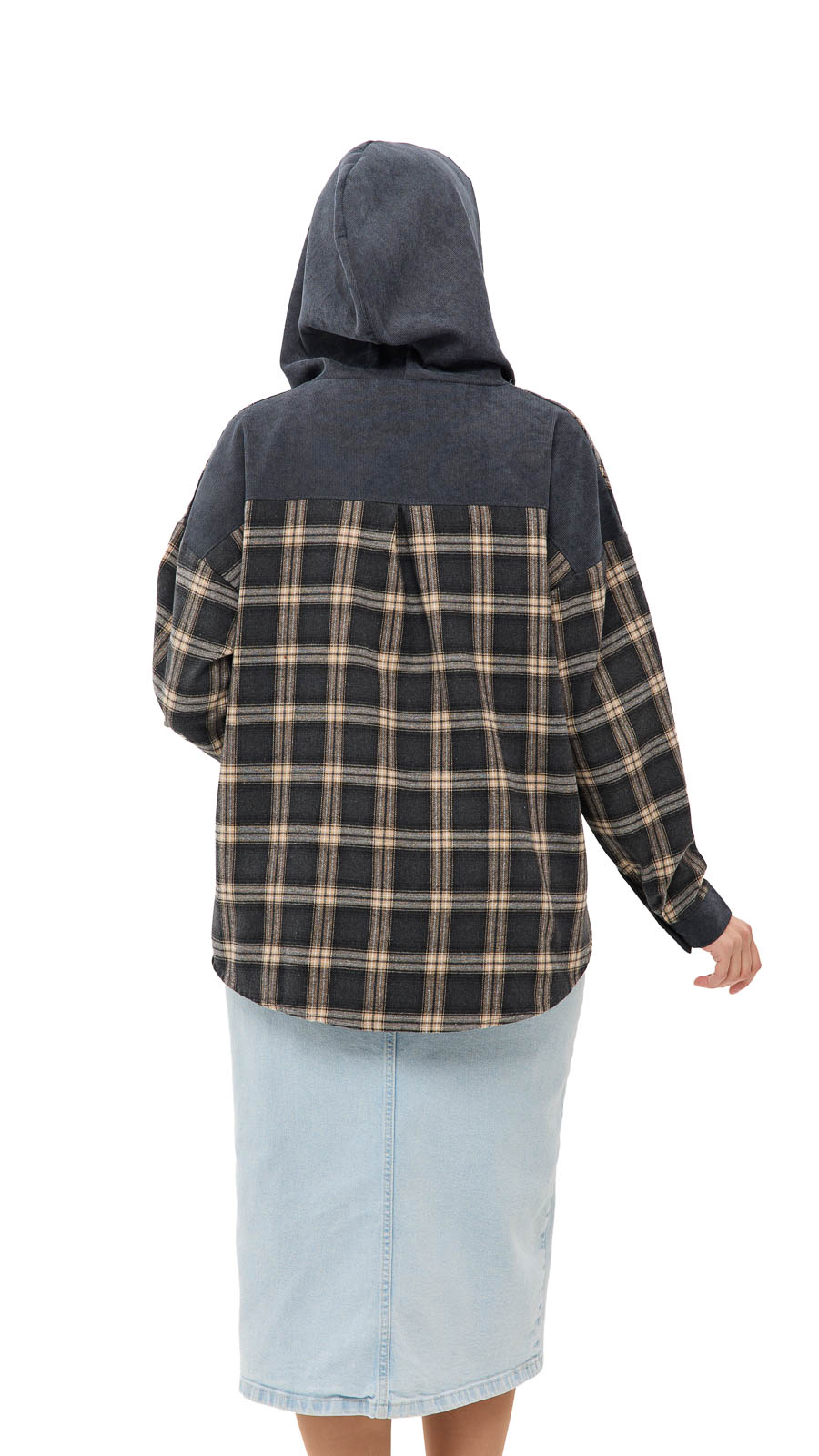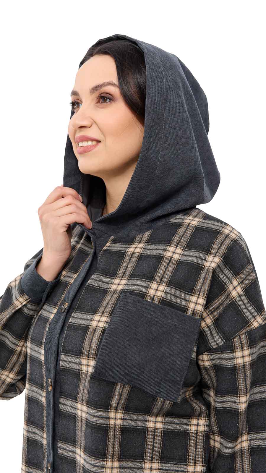 Особливий акцент — капюшон, який додає образу спортивно-casual настрою й робить річ ще практичнішою у прохолодну погоду. Дизайн у клітинку виглядає стильно та універсально, а вставки з вельвету (на капюшоні/елементах оздоблення) додають фактурності та “дорогого” вигляду. Сорочка «Меллі» можна носити як самостійний верх або як легку накидку поверх футболки чи топа — вона чудово поєднується з джинсами, легінсами та кросівками.