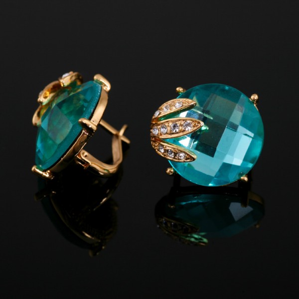 Сережки Бірюза оснащені англійським замком, який неймовірно зручний та комфортний, що робить їх популярними серед жінок. Механізм закріплення англійського замка полягає в наступному: дужка просовується в вухо та фіксується в спеціальному отворі за допомогою пружинного затискача (процес закріплення закінчується ледь чутним клацанням). Прикраси з англійським замком – класика, мода на яку не проходить. Діаметр декоративного елемента складає 1.7 см.