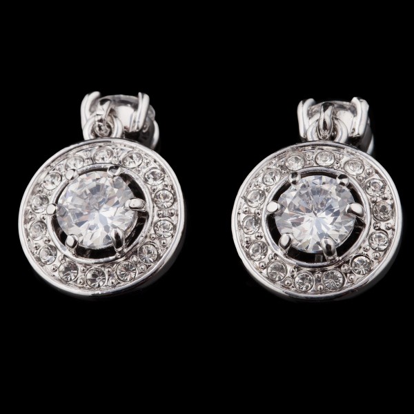 Композиція сережок, що блищить круглими формами, нагадує сонячний диск у липневий полудень. У центрі прикраси розташований діамантит бриліантової огранки. Ця розкішна прикраса подарує вам відчуття свята.