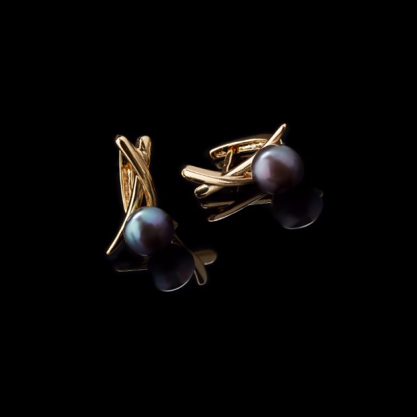 Сережки Лінда чорні перли в золоті