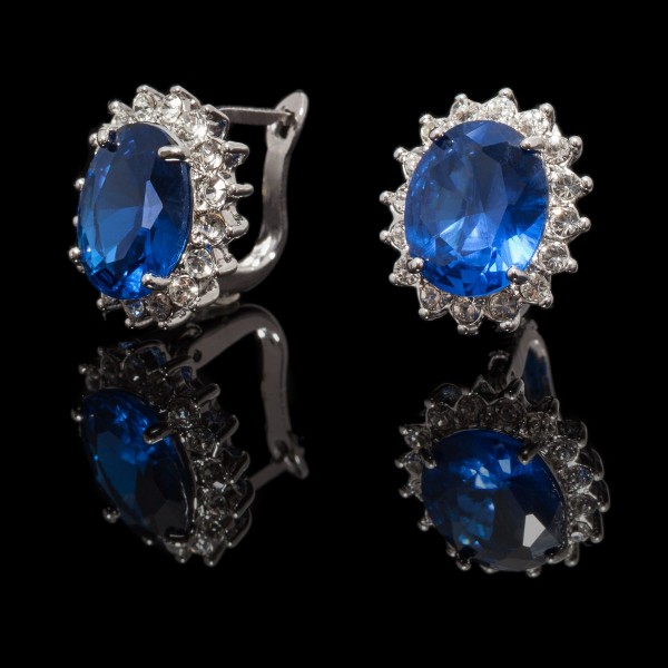 Одного разу ви знайдете свого принца. І весь світ осяє світлом вашого кохання. Представляємо вашій увазі Сережки Принцеса. Центральний діамантит кольору сапфіру обрамлений прозорими кристалами.