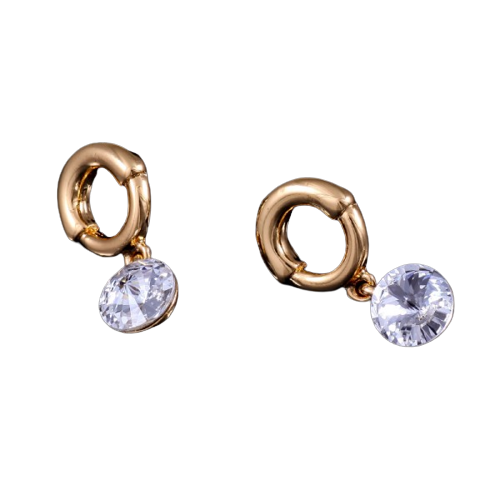 Сережки виконані з повним золотим покриттям 18 карат та прикрашені прозорим діаманітом, що надає їм вишуканий та розкішний вигляд. Вони ідеально підійдуть для повсякденного носіння, а також для особливих випадків.