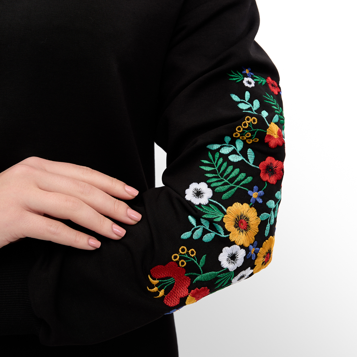 Крій: Сукня жіноча с турецької двонитки з вишивкою на рукавах. Тканина з натуральних складових