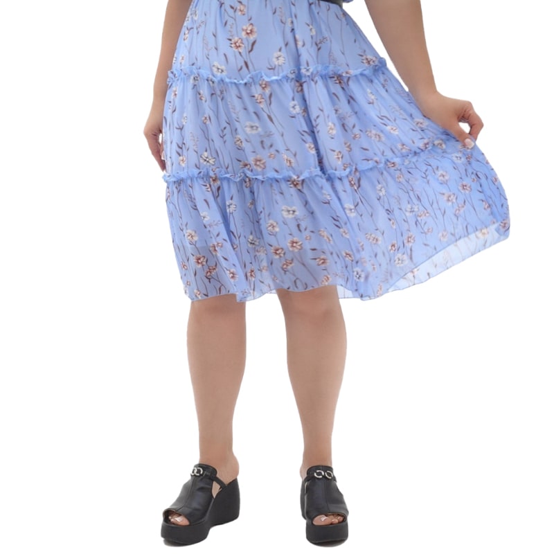 Подивіться на цей розкішний наряд! Прекрасний шифон у благородній акварельній гаммі, прикрашений вишуканим квітковим орнаментом. Вільний крій сукні, акцентований воланами, ніжно підкреслить жіночність та природну красу вашої фігури, а також вміло приховає будь-які нерівності.