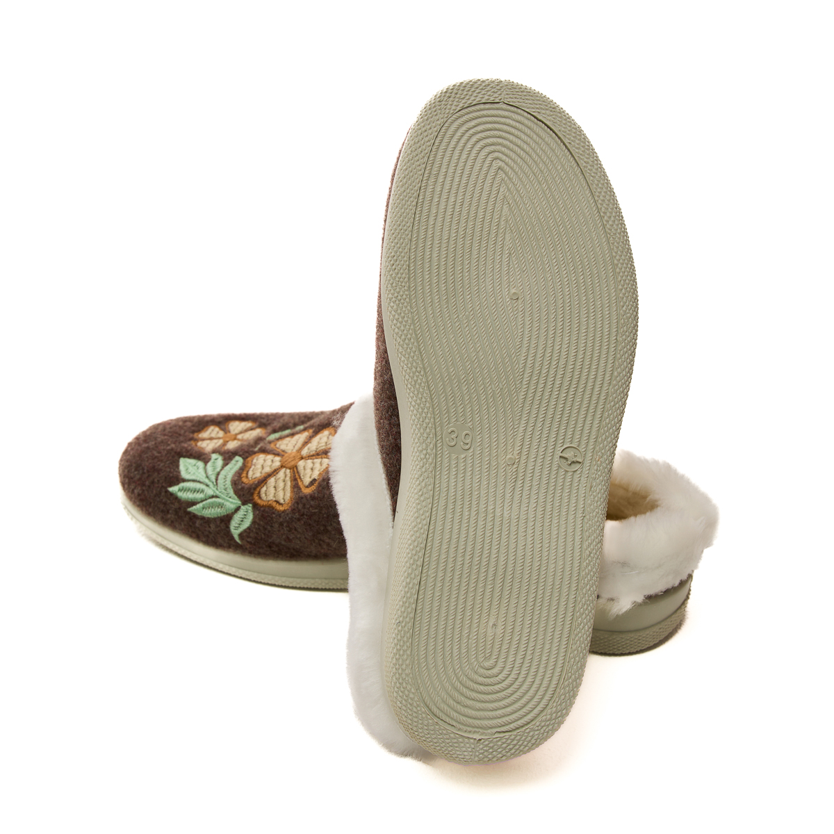 Верх капців виготовлений зі щільної повсті. А це означає, що капці не протруться, не розтягнуться! Будьте впевнені - капці прослужать Вам довгі роки! І тільки погляньте на цей дивовижний квітковий орнамент. Так красиво, так по-домашньому!