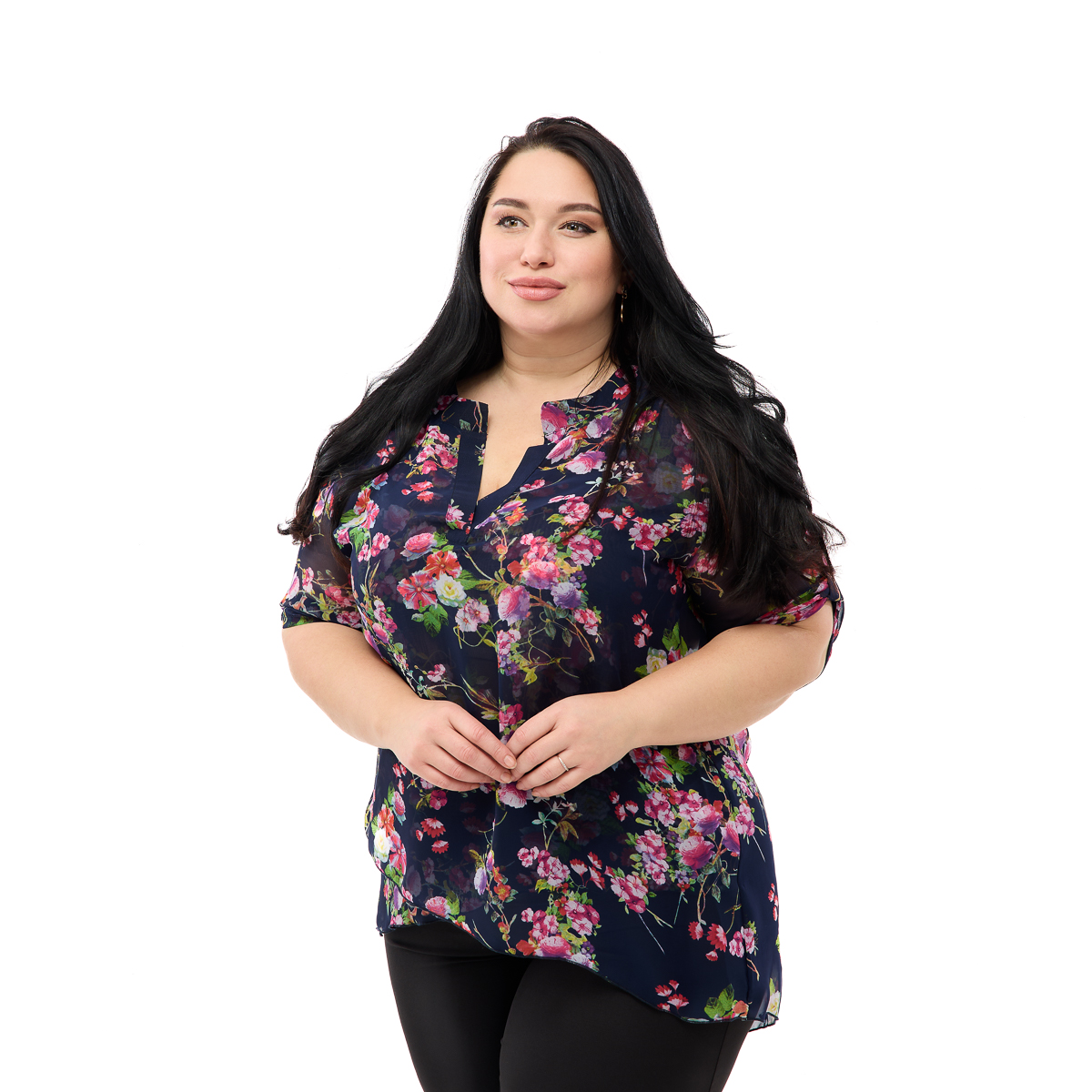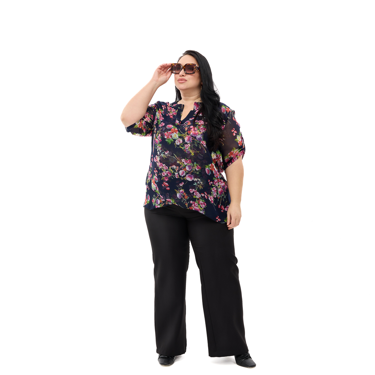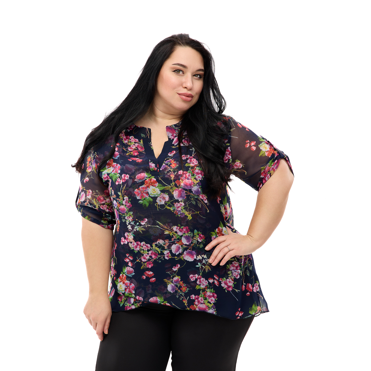 Ніжний шифон на основі шовку витончено спадає по фігурі! Образ неймовірно легкий та жіночний. Стильний квітковий принт освіжає та омолоджує! При цьому завжди буде у моді! На вибір велика кількість варіантів! І такий незвичайний крій! Ефект запаху внизу і рукав, що регулюється, делікатно нівелюють нюанси фігури, а класичний виріз і комір стійка відмінно акцентують увагу на портретній зоні! Така туніка не залишиться непоміченою! У будь-якій ситуації ви будете на висоті! Завжди струнка та приваблива! Якісний шифон не боїться багаторазового прання, відмінно зберігає яскравість фарб і не змінює форму! Туніка Флора – це покупка на довгі роки!