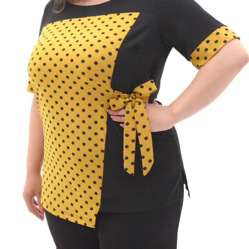 Дивовижно, як сексуально та привабливо виглядають моделі в туніці Краса! Завдяки своїй невимушеній асиметрії, поєднанню принта в горошок з однотонним матеріалом, цей виріб чудово приховує зайві об'єми і візуально зменшує вас на декілька розмірів.