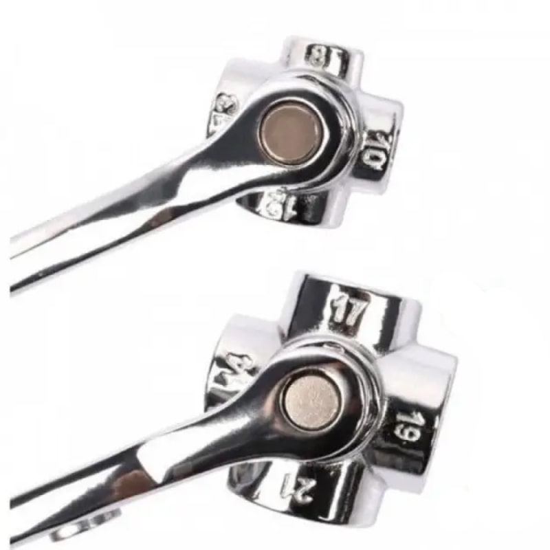 Простота використання: Оснащений вісьмома головками з обох сторін, розмір яких легко змінюється одним рухом, цей ключ дозволяє виконувати роботу швидко та ефективно.
