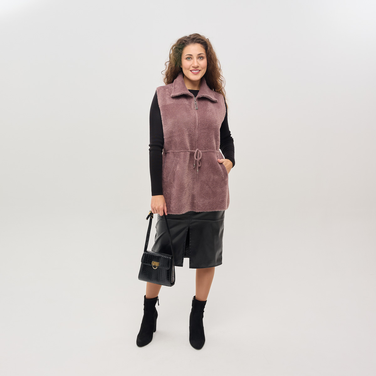 Жилетка Амілія це стильний і практичний елемент гардеробу для холодного сезону, що дарує тепло та комфорт без перевантаження образу. Виготовлена з приємної на дотик тканини “альпака” з м’яким ворсом і ніжним блиском. Жилет має прямий крій, що пасує будь-якій фігурі, не сковує рухів і красиво виглядає в поєднанні з джинсами, гольфом чи теплим светром.