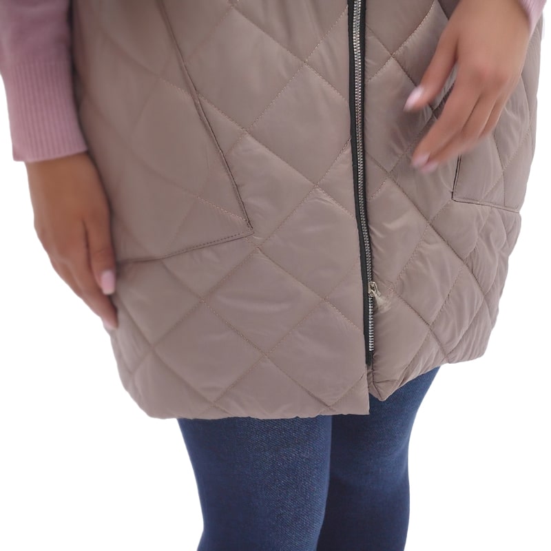 Особливу увагу заслуговує крій цього жилета. Приталеність підкреслює жіночні вигини, роблячи акцент на стройності фігури, при цьому не жертвуючи комфортом. Двостороння блискавка доповнює дизайн та забезпечує зручність при одяганні та зніманні жилета.