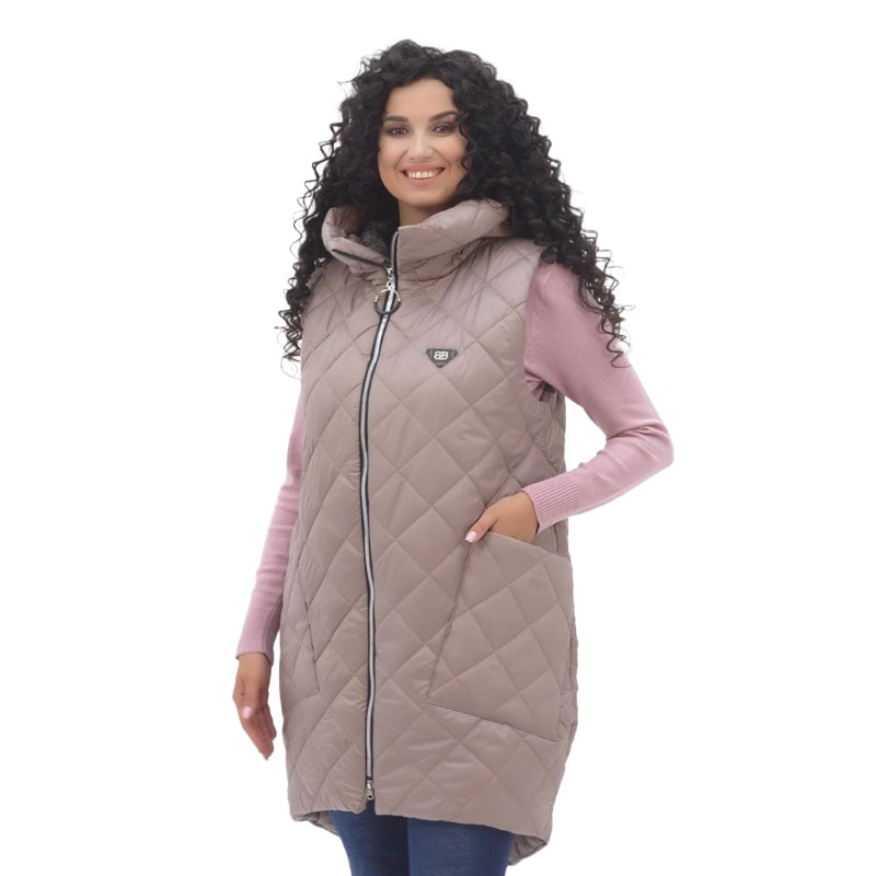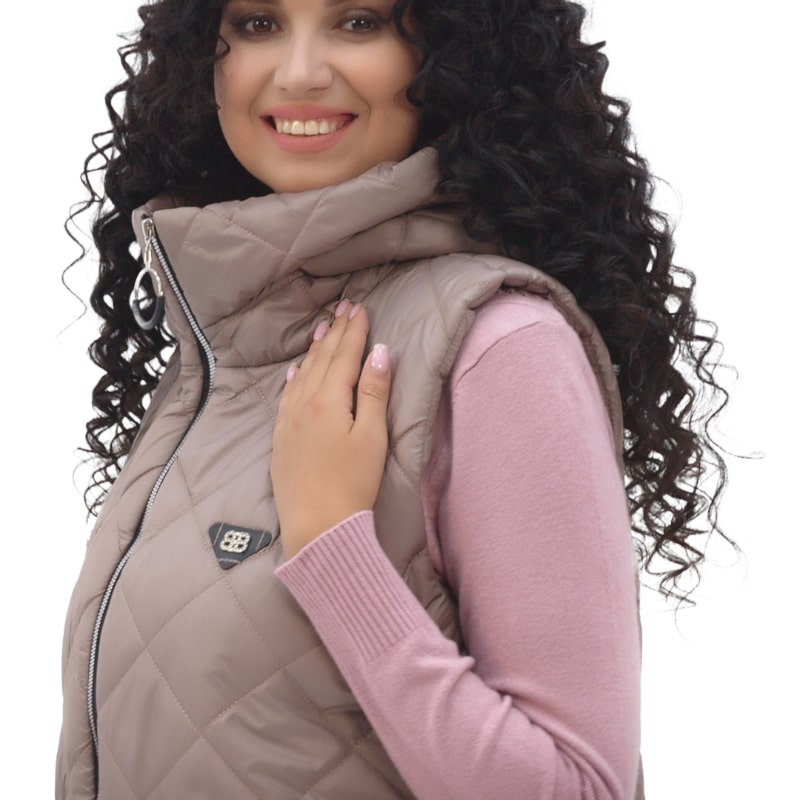 Особливу увагу заслуговує крій цього жилета. Приталеність підкреслює жіночні вигини, роблячи акцент на стройності фігури, при цьому не жертвуючи комфортом. Двостороння блискавка доповнює дизайн та забезпечує зручність при одяганні та зніманні жилета.