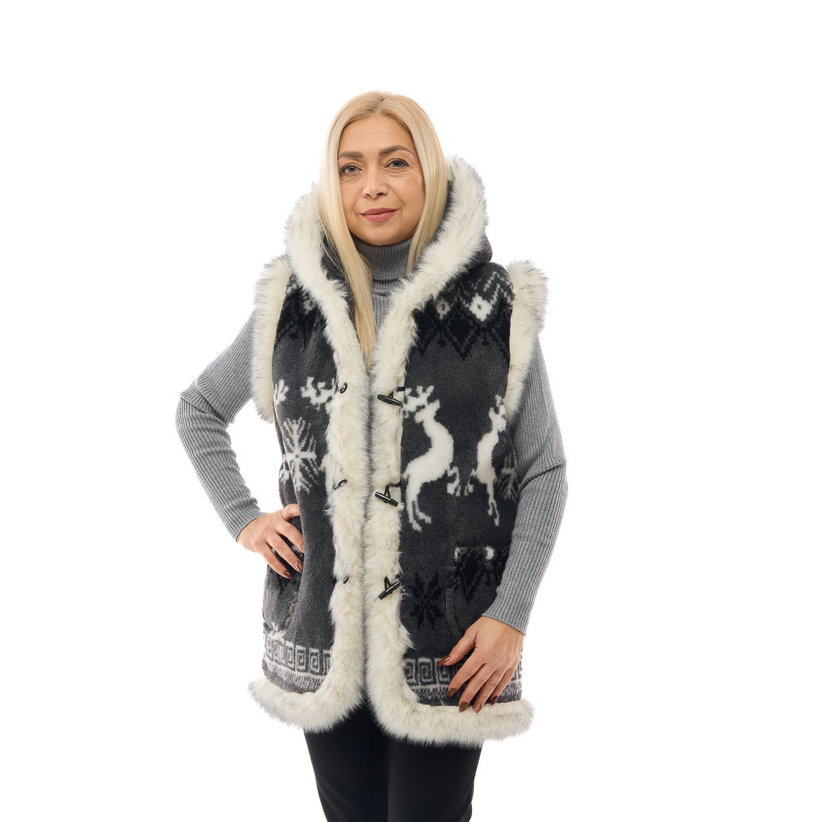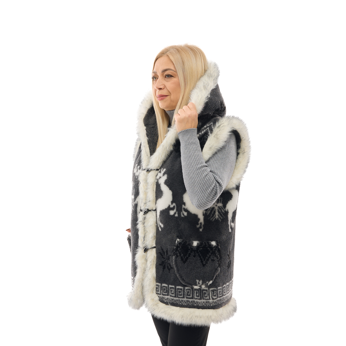 Жилет Марічка, з капюшоном, сірий